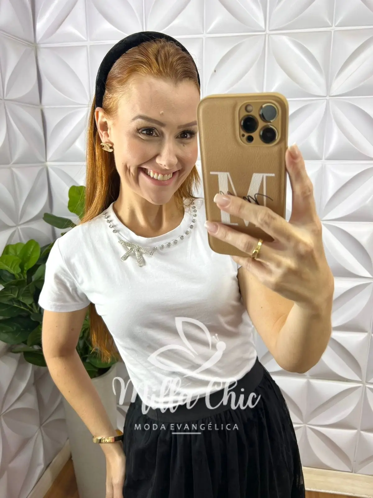 Blusa Rubi Com Broche Laço - Branca - Milla Chic