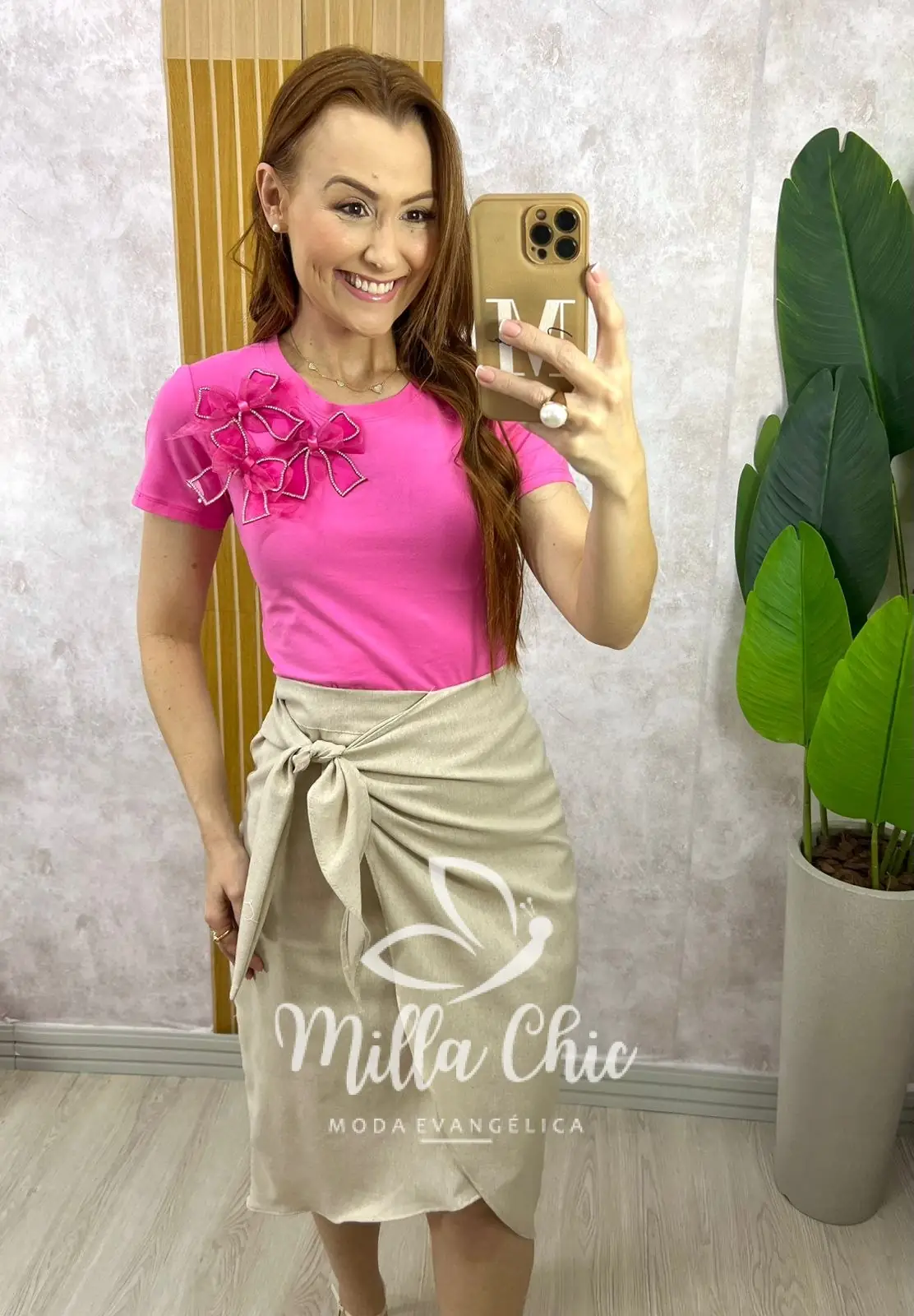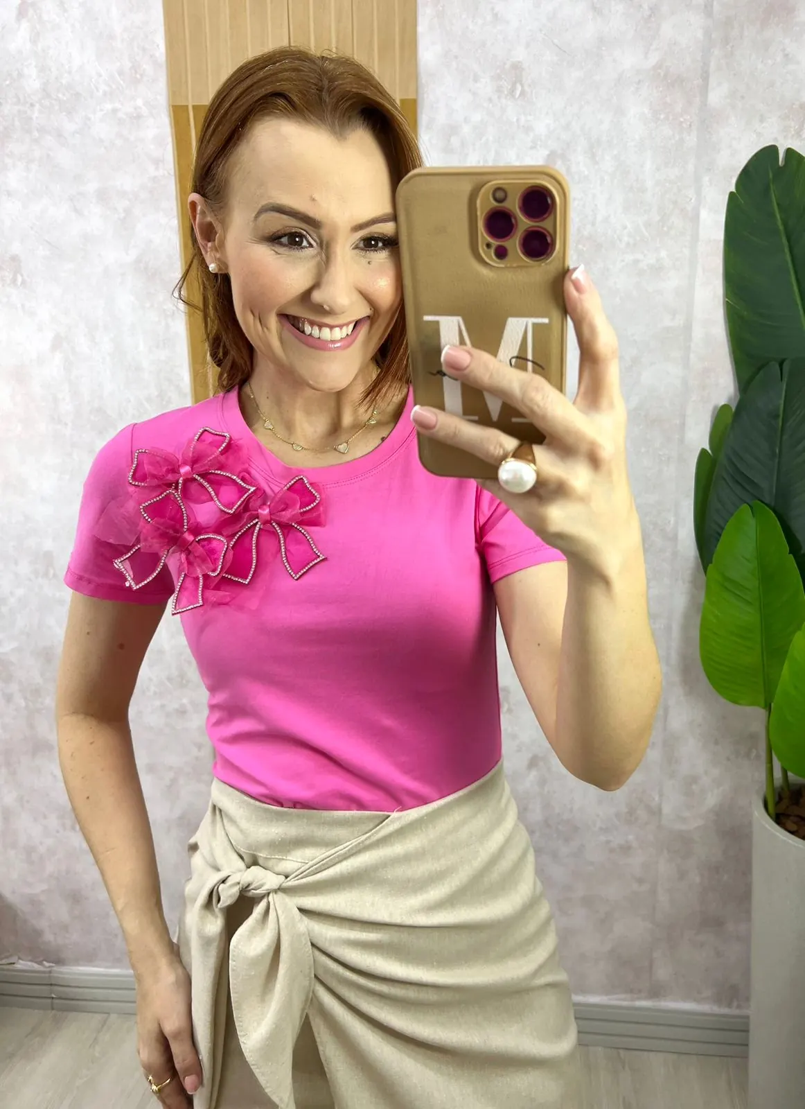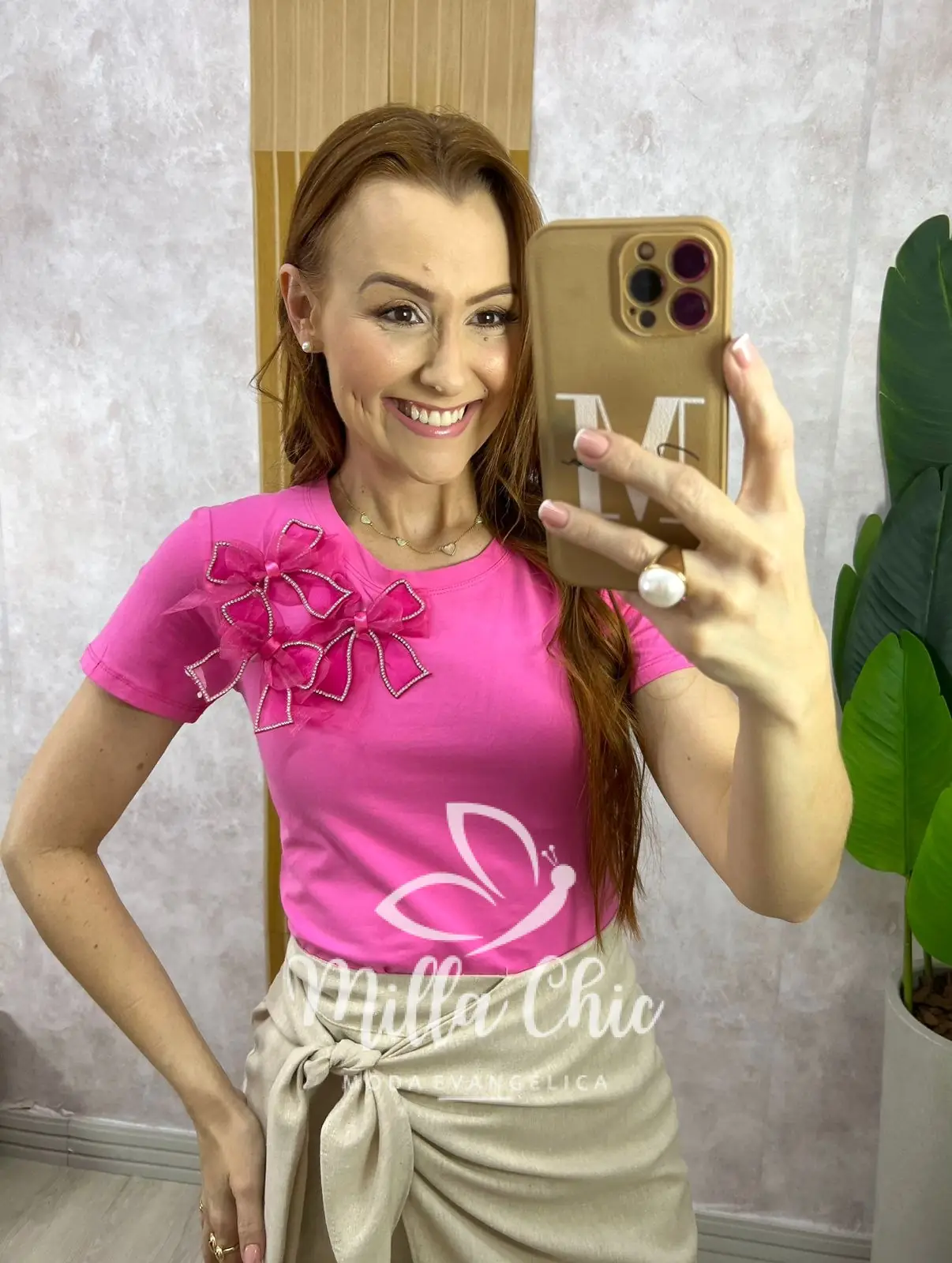 Blusa Sabrina Em Algodão Com Laço - Rosa Barbie - Milla Chic