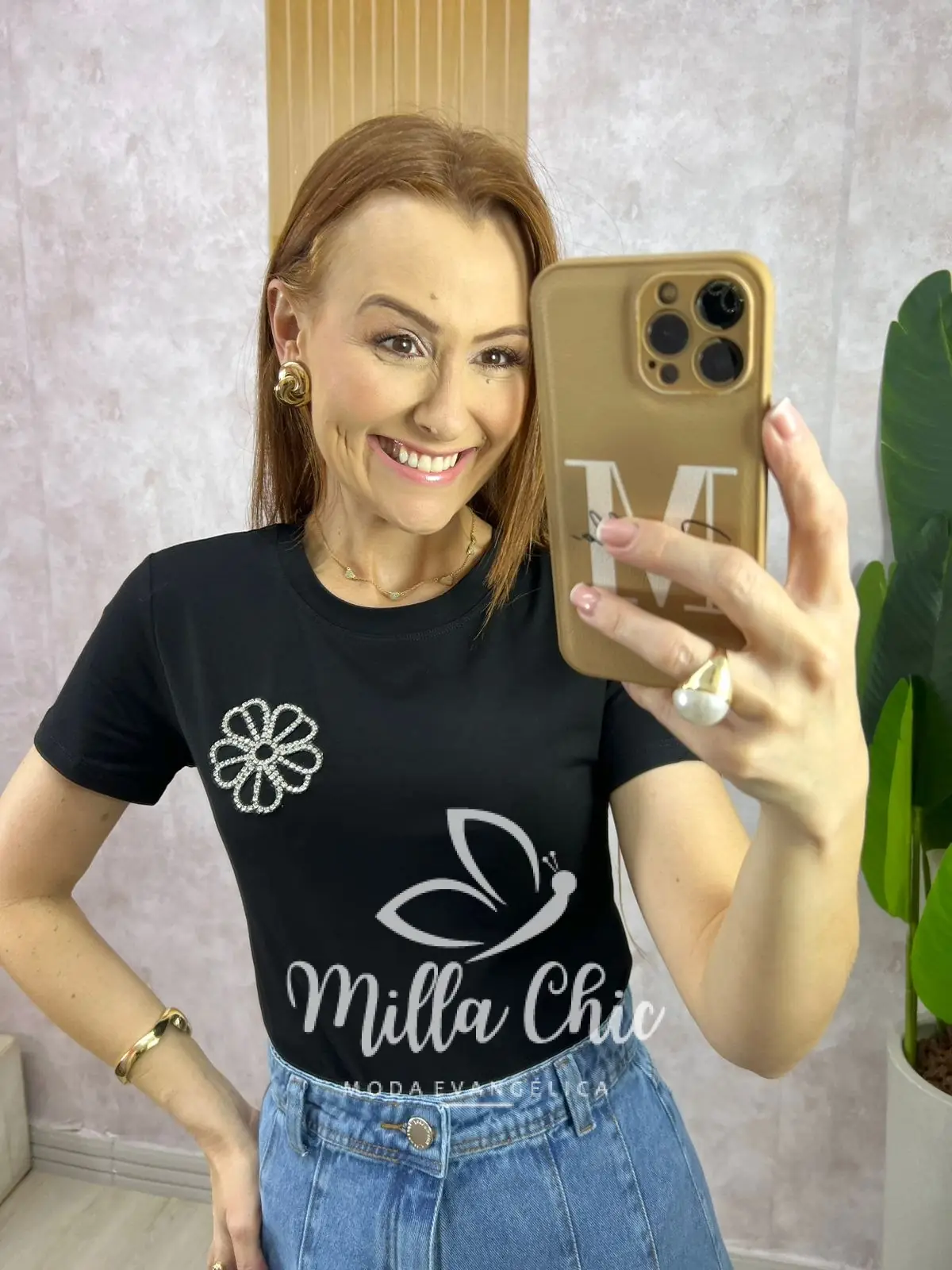 Aquela blusa confortável e estilosa para looks casuais ficarem mais elegantes e sofisticados. Confeccionada em malha 100% algodão. Muito confortável e fresca. E o detalhe que faz toda diferença e deixa ela linda, delicada e muito chic é a aplicação em strass . É o que traz toda a elegância para essa blusa.