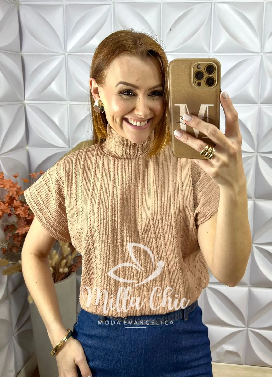 Ela possui uma modelagem confortável mais larguinha e a gola alta que passa uma elegância.