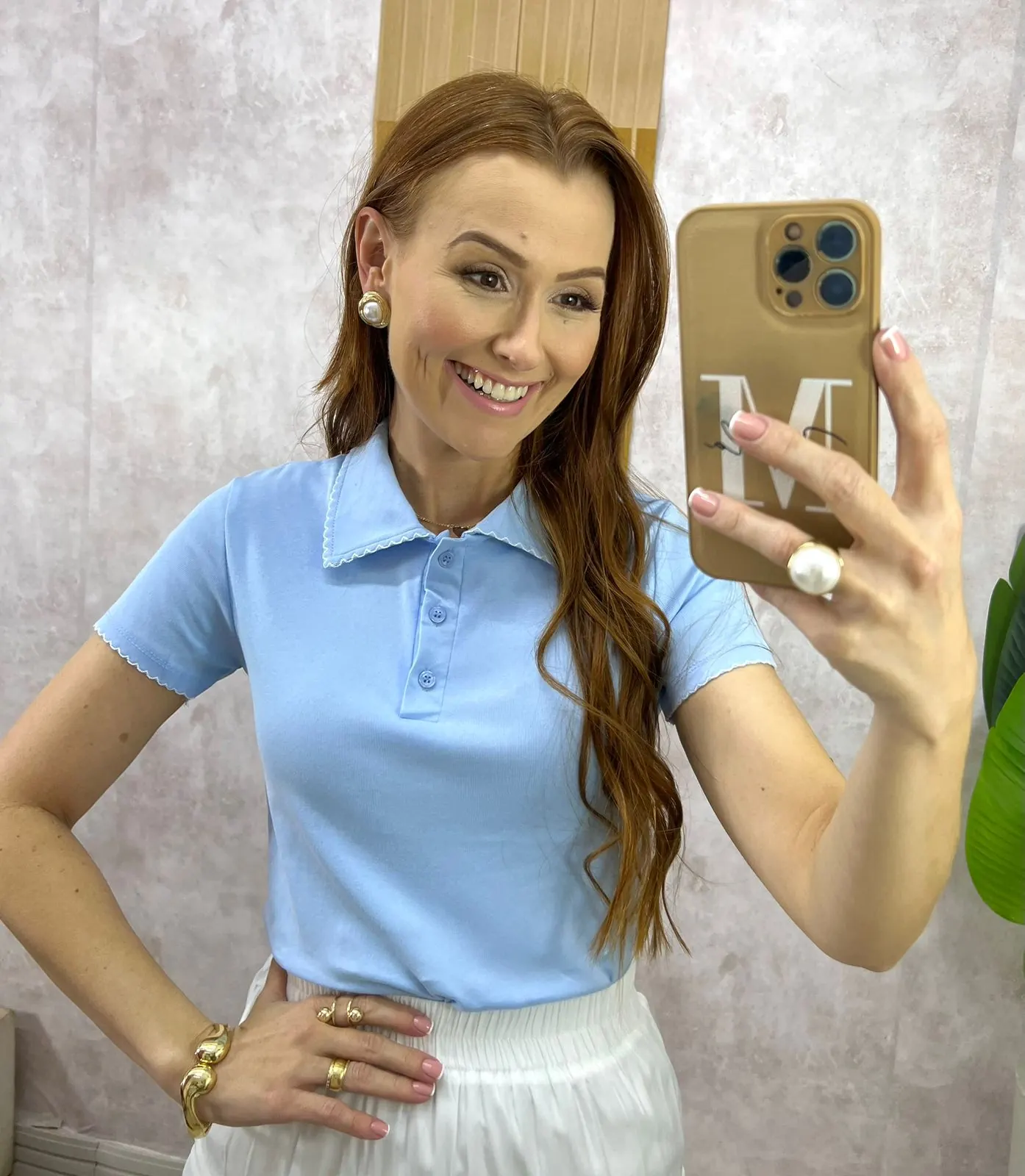 Blusa Tânia Gola Polo Malha – Azul Baby