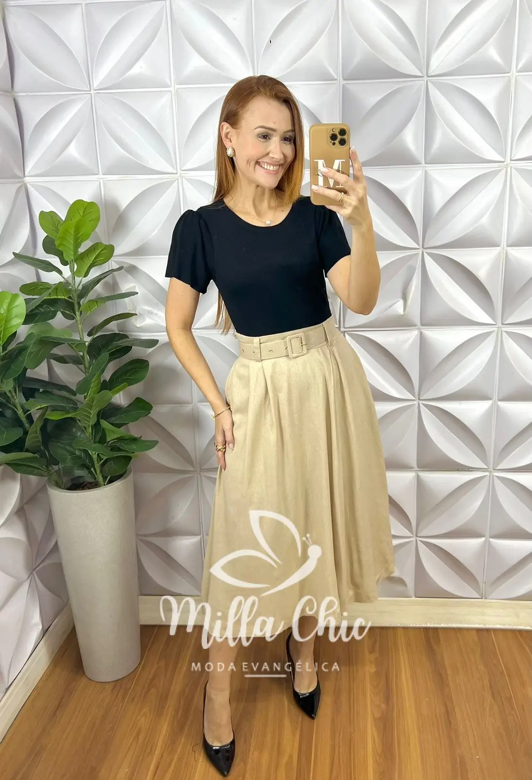 Tecido: Composição: 65% Viscose| 35%Poliamida.