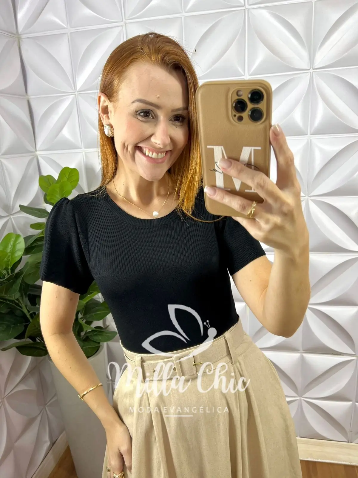 Blusa Tarsila Em Tricot Modal - Preta - Milla Chic