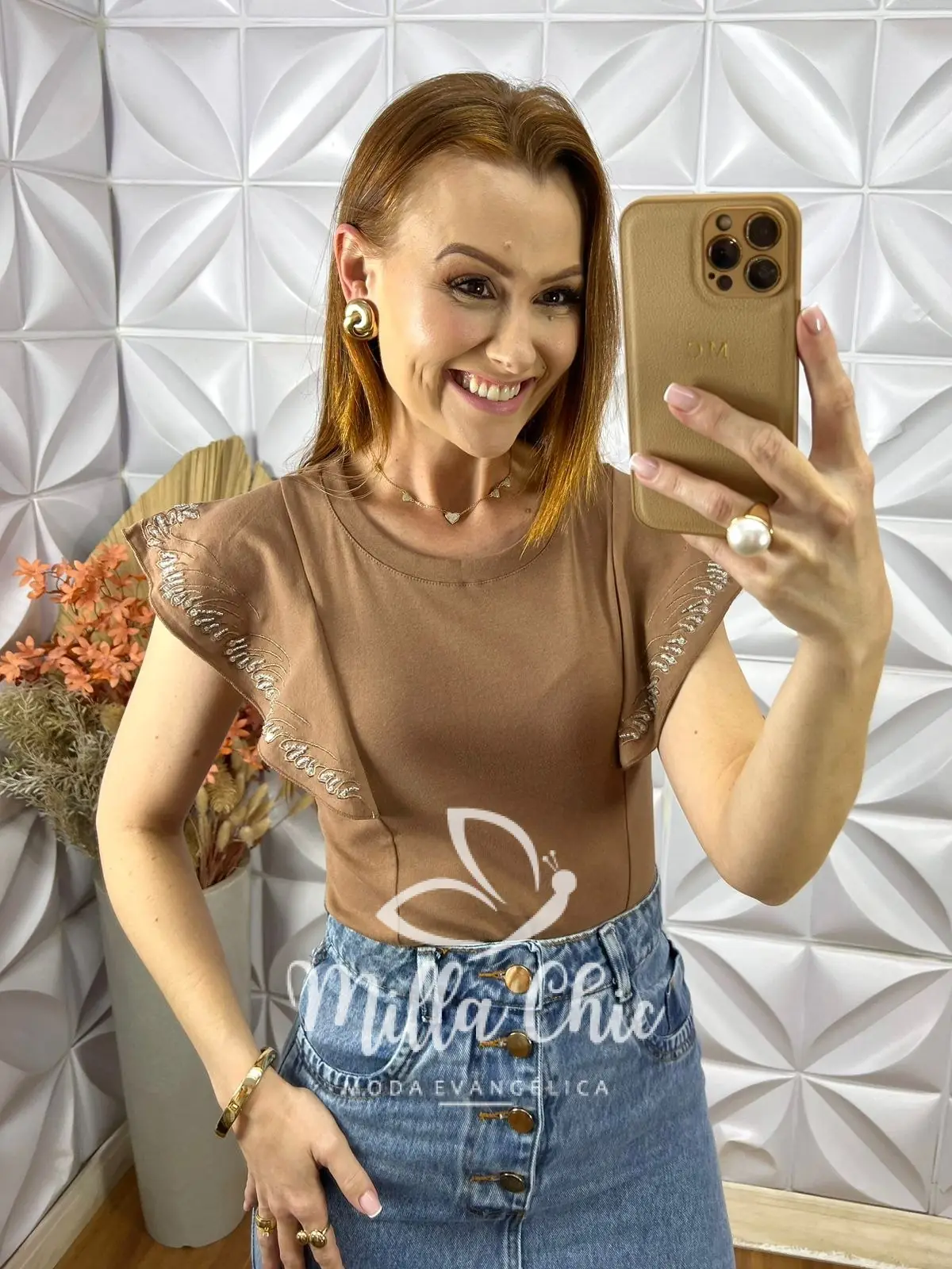 Blusa Telma Bordada - Avelã - Milla Chic
