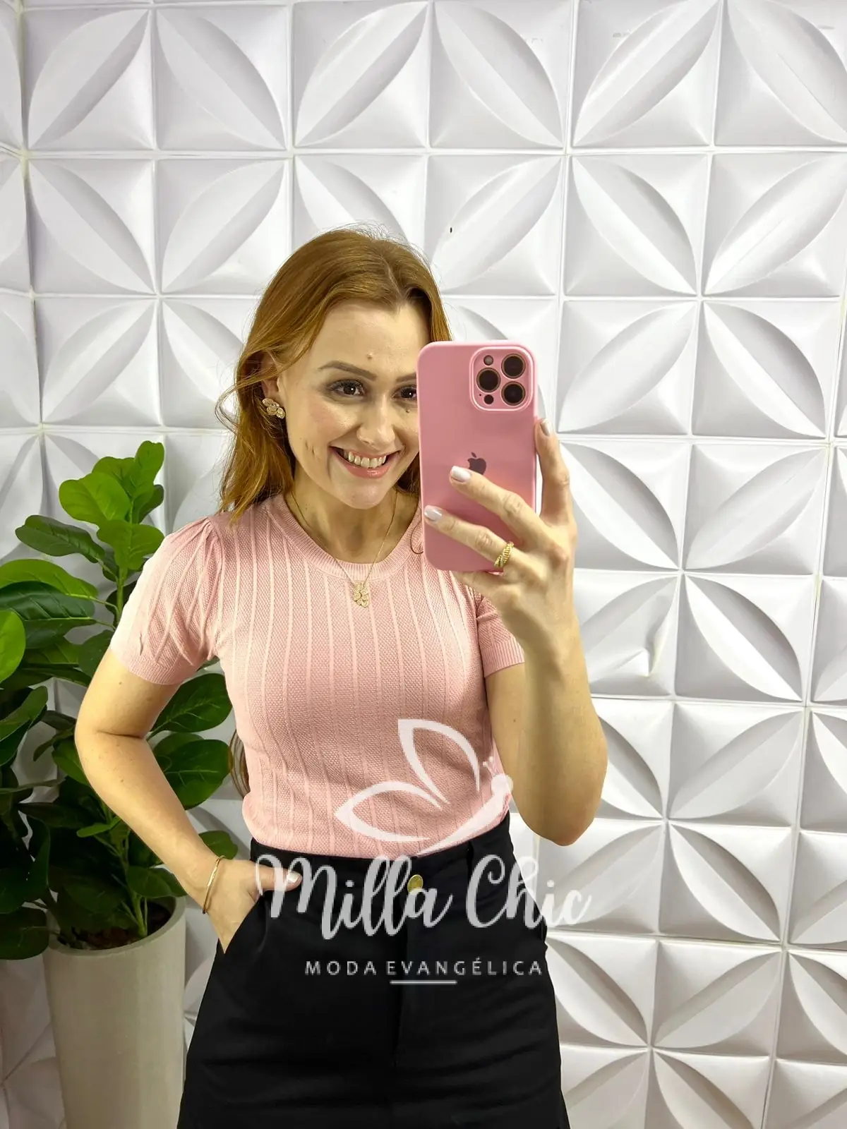 Blusa Tricot 3D Modal Gola U Michele – Rosa