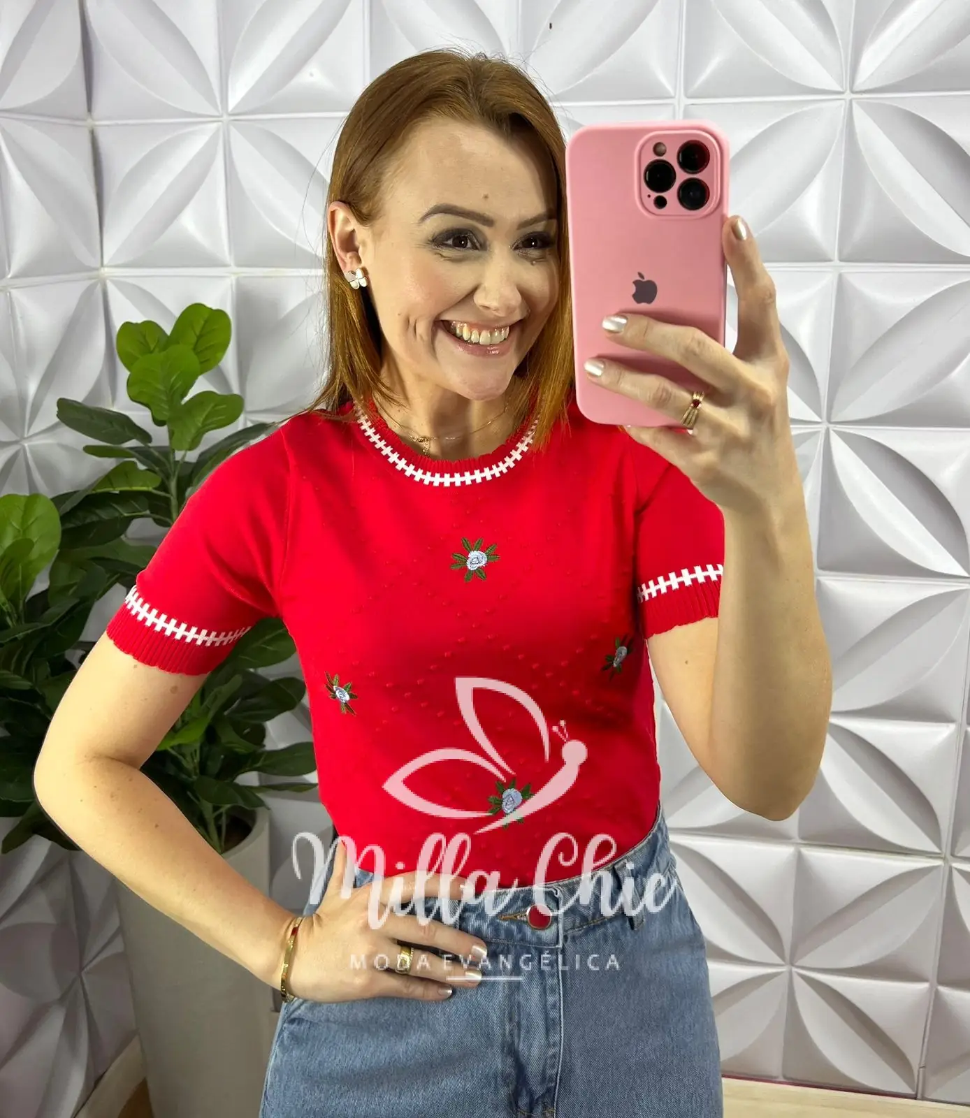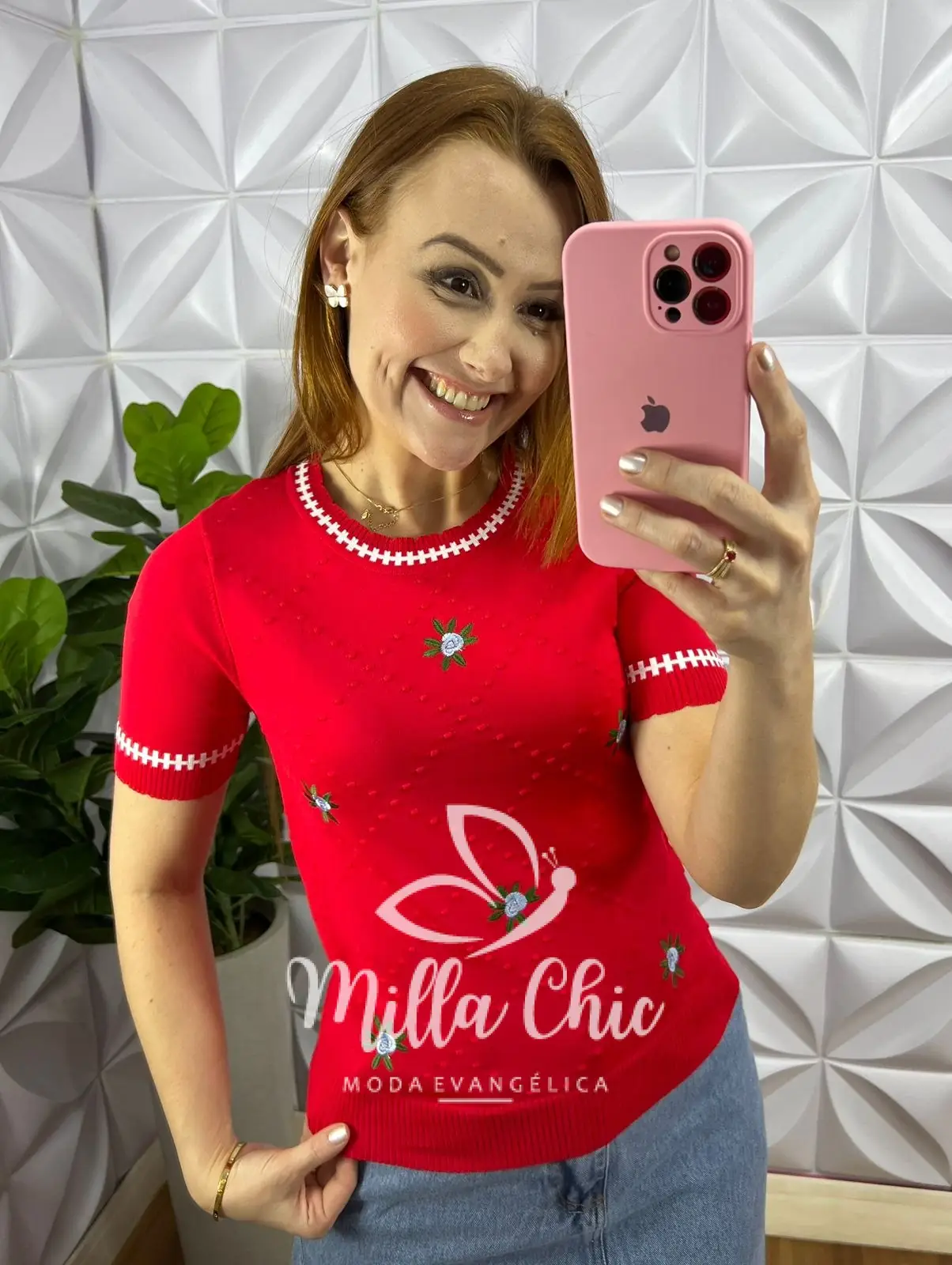 Blusa Tricot Com Bordado Floral Viviane – Vermelha