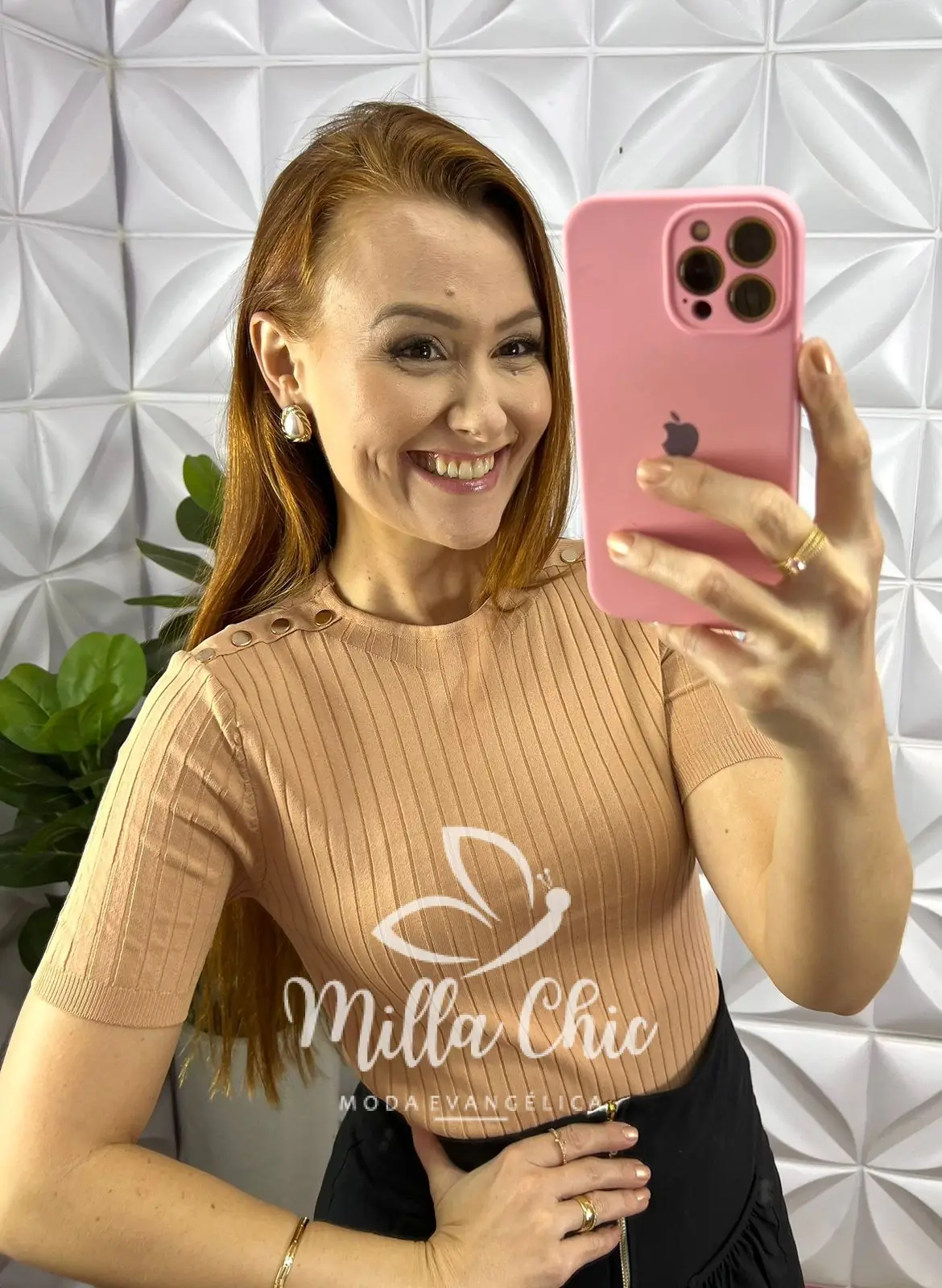 Blusa Tricot Modal Com Botoes Dourados No Ombro Marcele – Nude