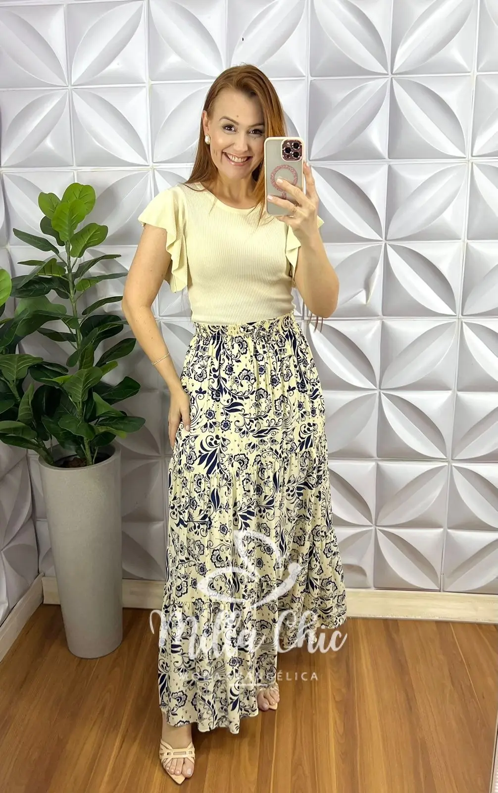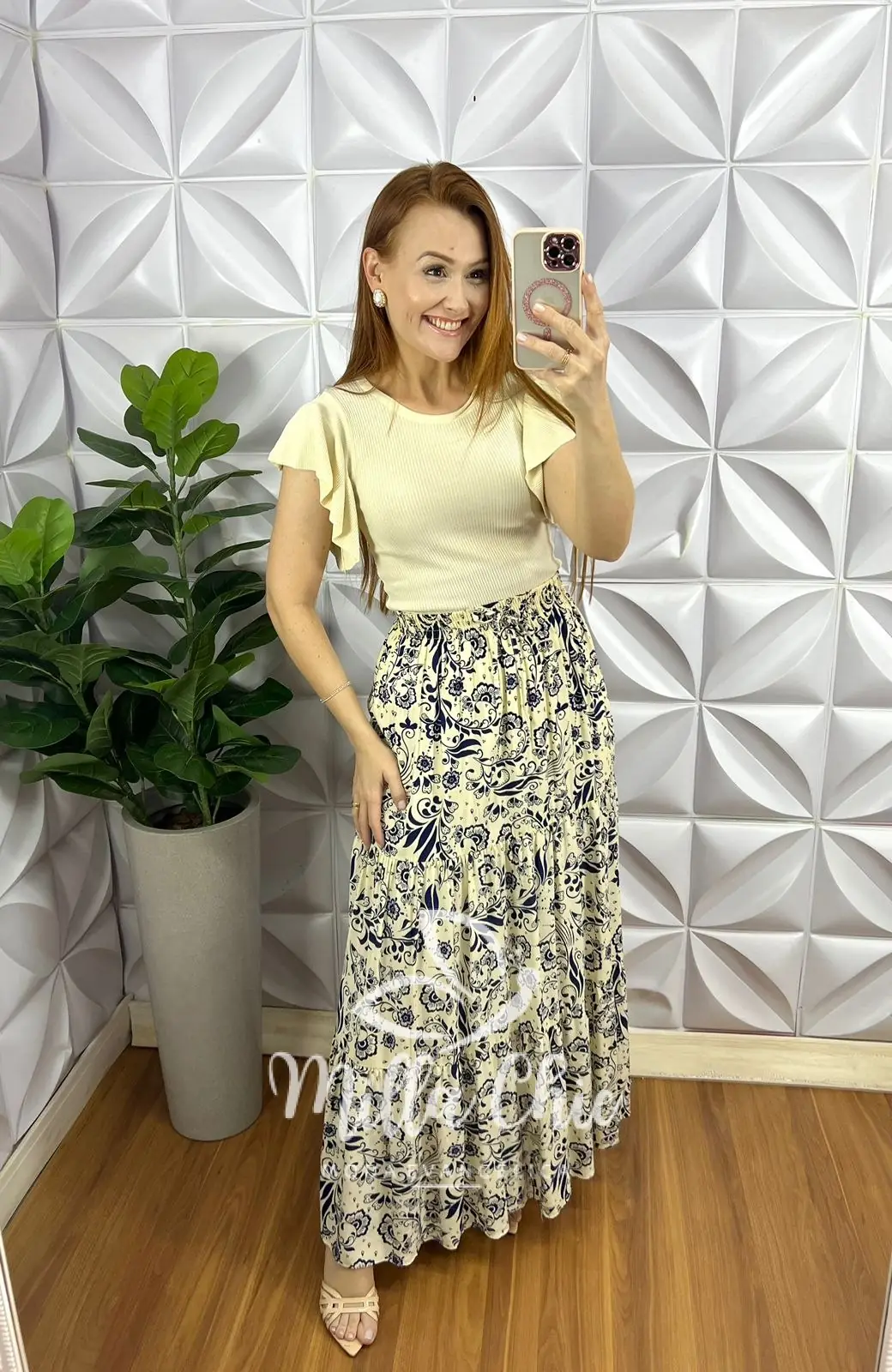 Possui: Manga babadinho, Gola redonda marcada, comprimento ideal.