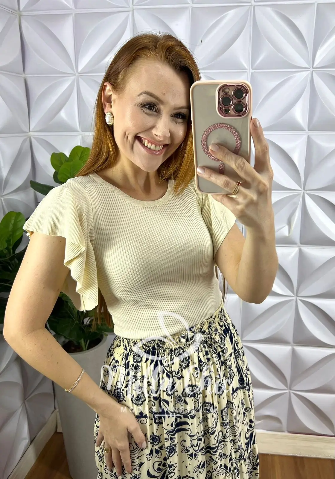 Blusa Tricot Modal Com Manga Babadinho Ketelyn – Creme