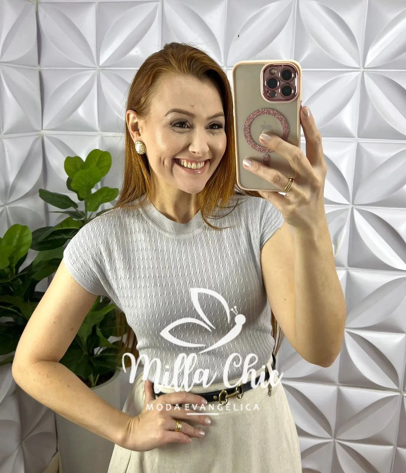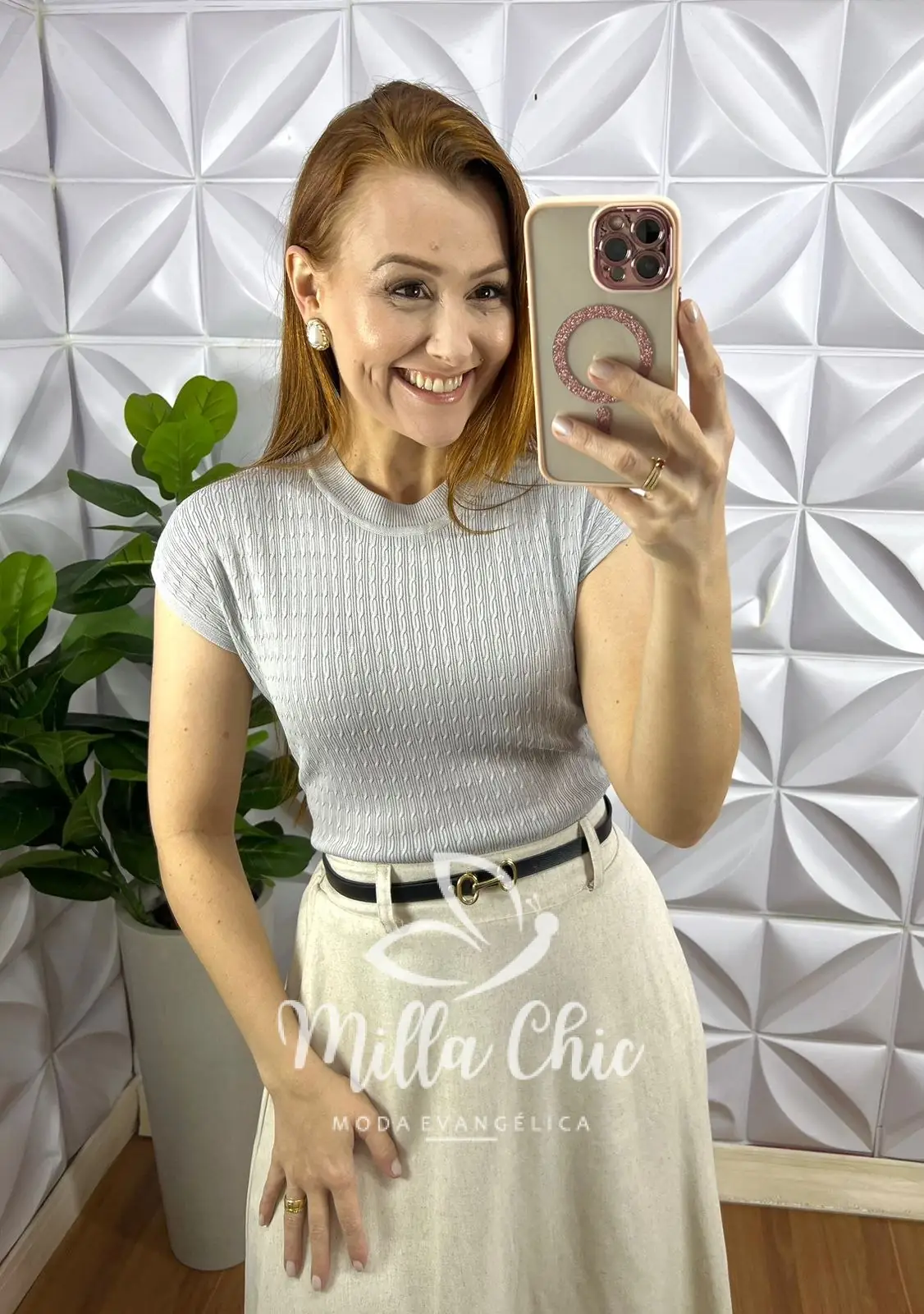 Blusa Tricot Modal Com Manga Musclee Bia – Cinza