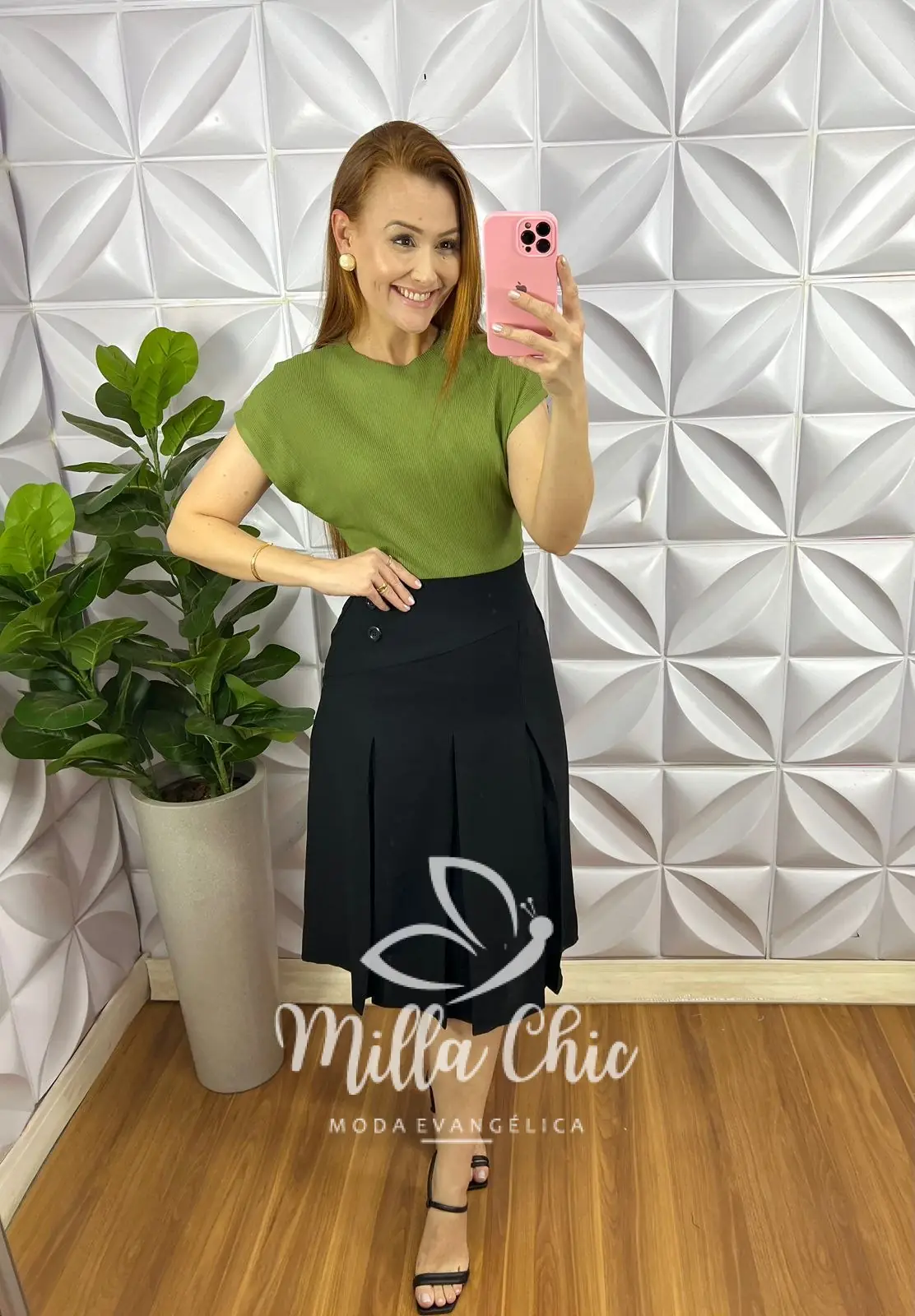 Blusa Tricot Modal Com Manga Musclee Gola Alta Luci – Verde