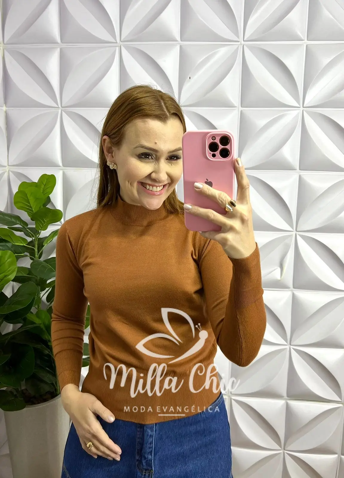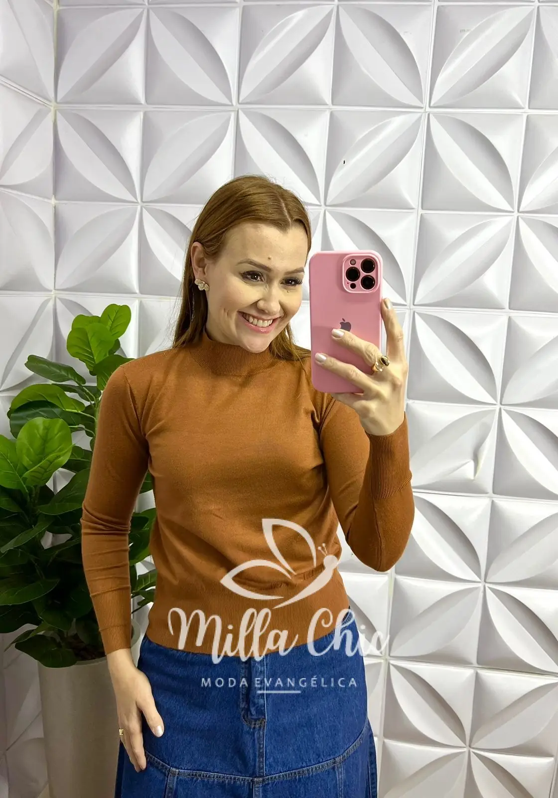 Blusa Tricot Modal Gola Alta Com Elástico Manga Longa Saray – Caramelo