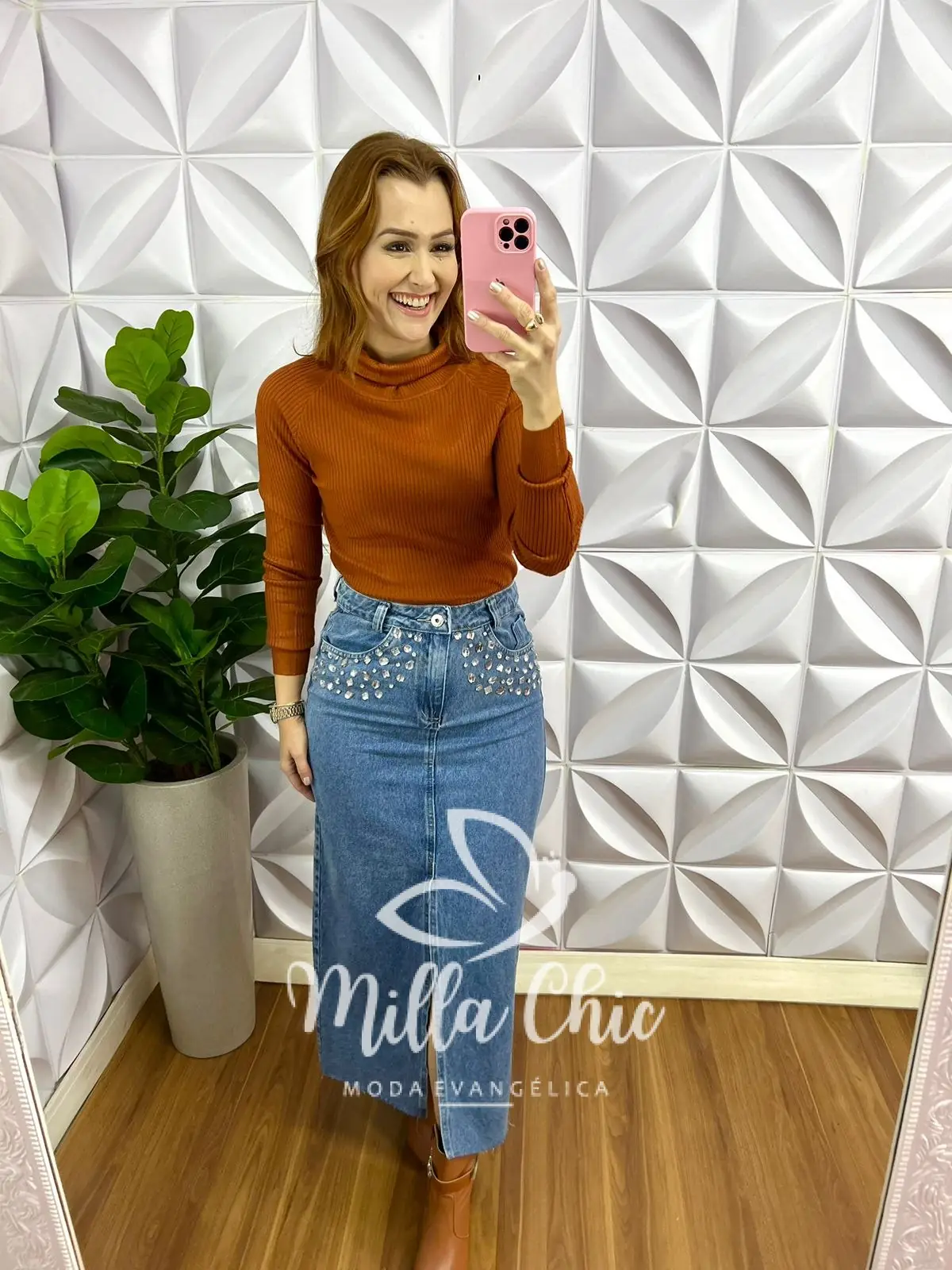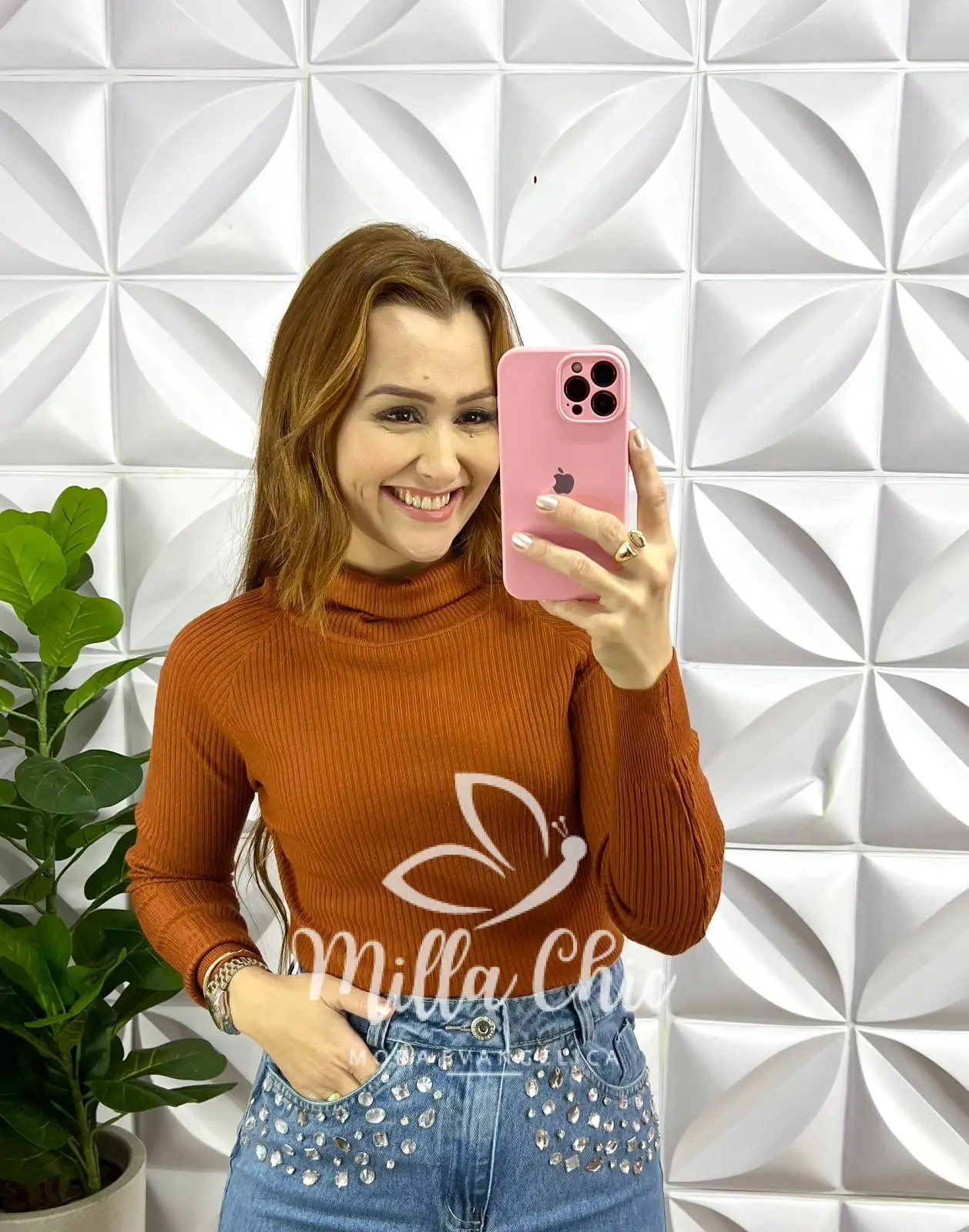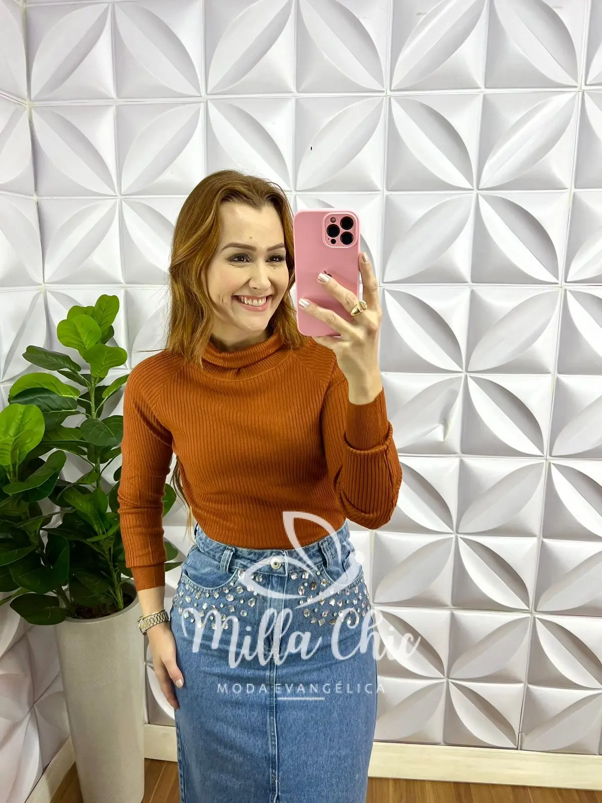 Blusa Tricot Modal Gola Alta Manga Longa Eloá – Terra Cota