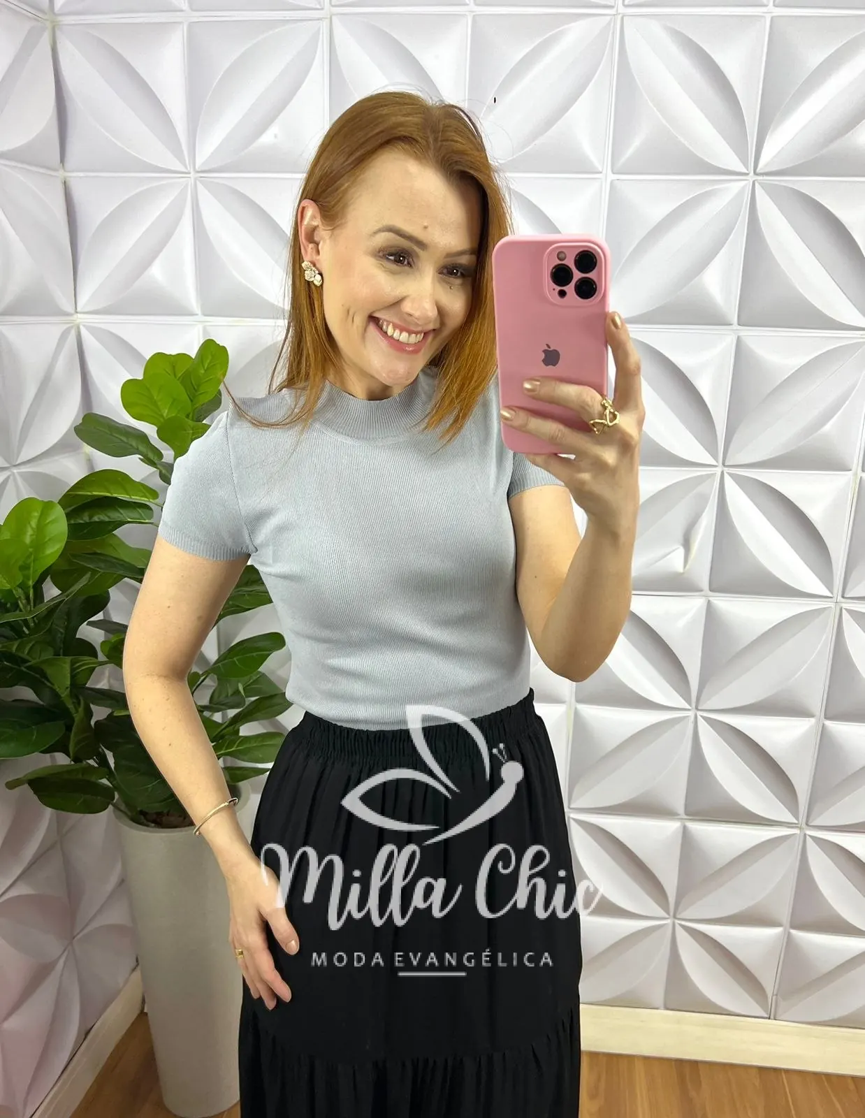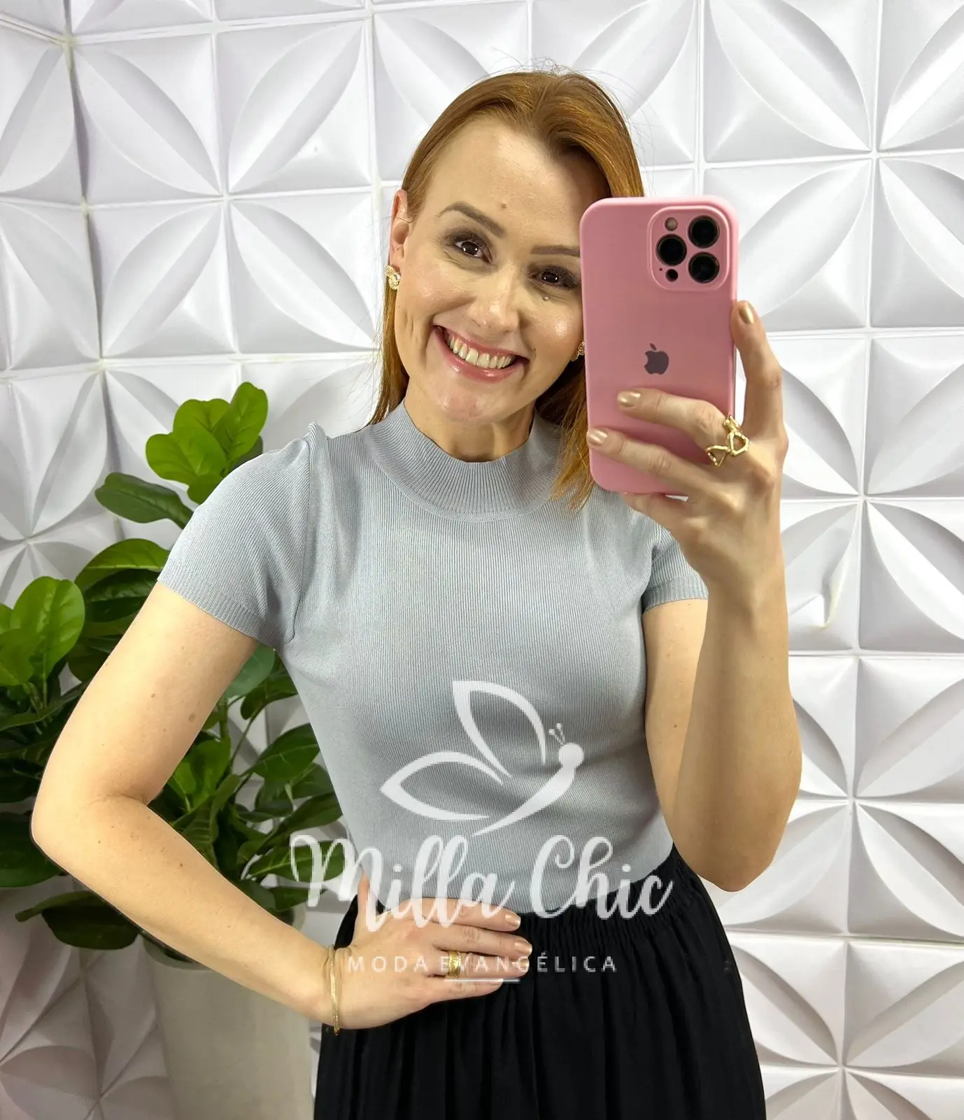 Blusa Tricot Modal Gola E Manga Marcada Lívia - Cinza - Milla Chic