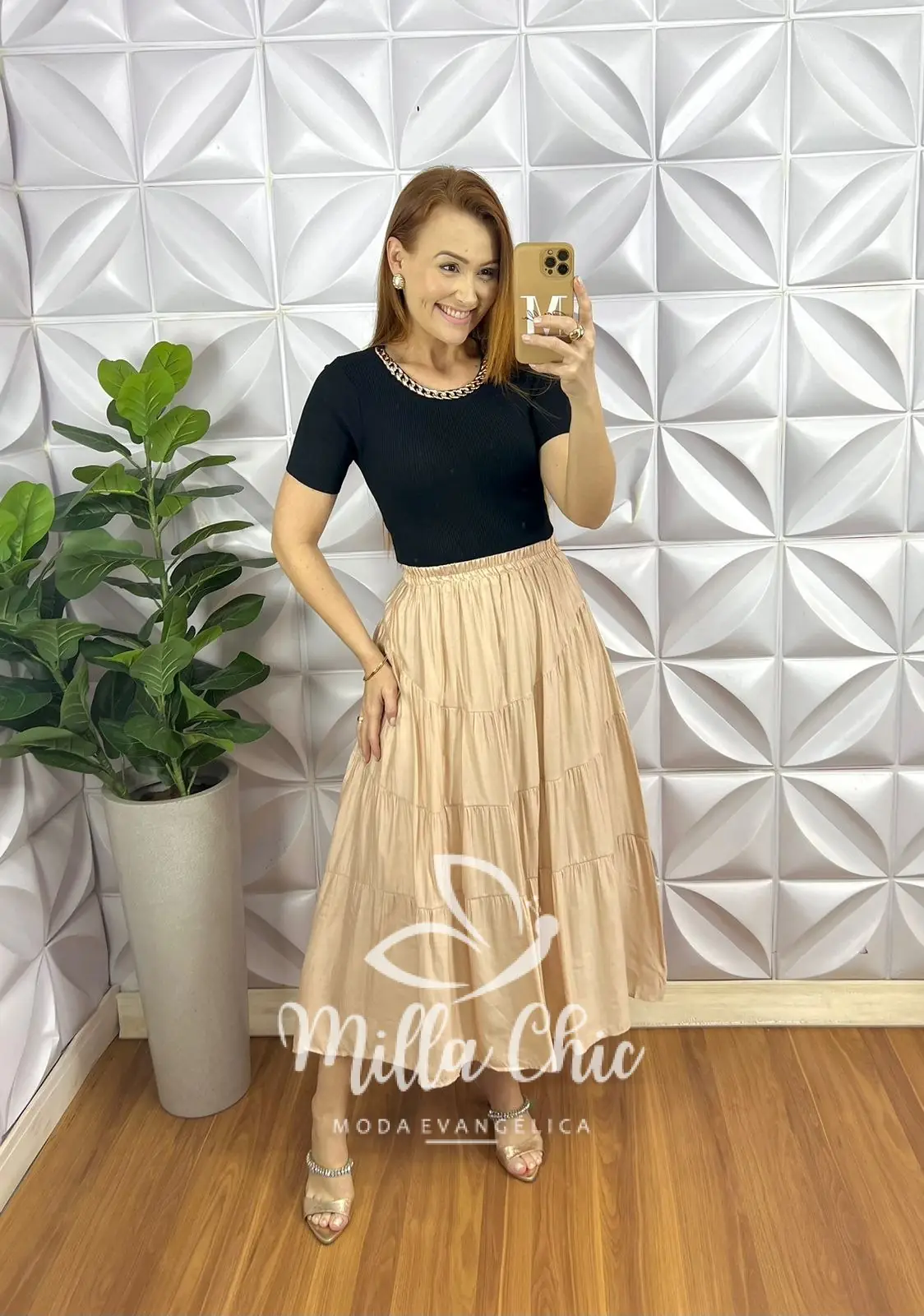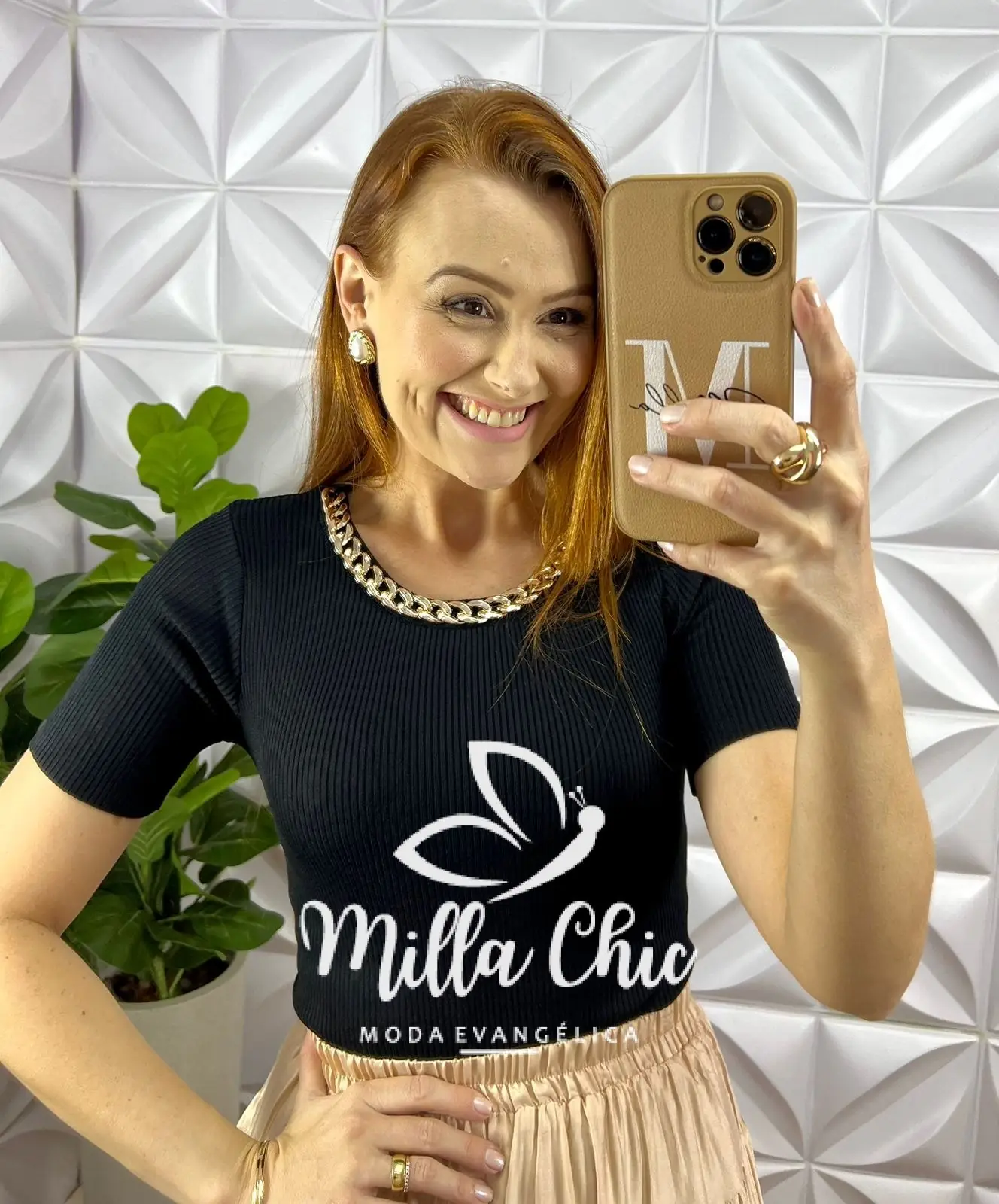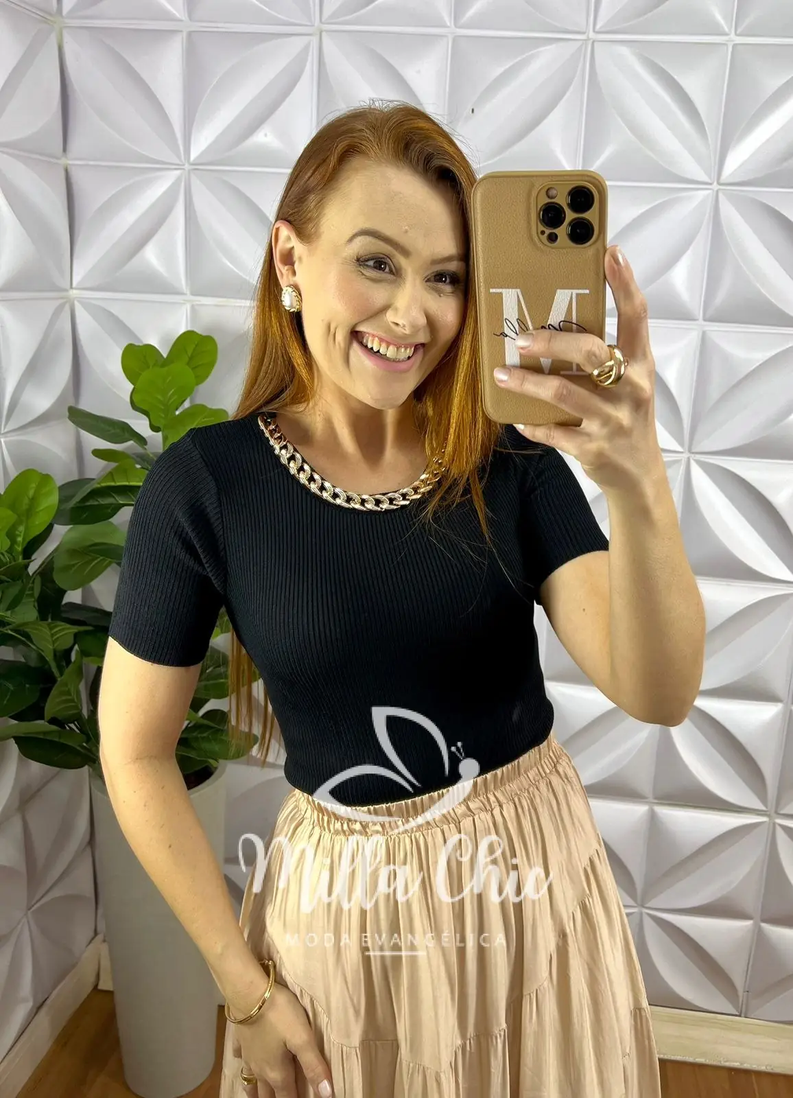 Possui: Manga Justa, Gola U marcada, colar de corrente, estilo cropped com comprimento ideal.