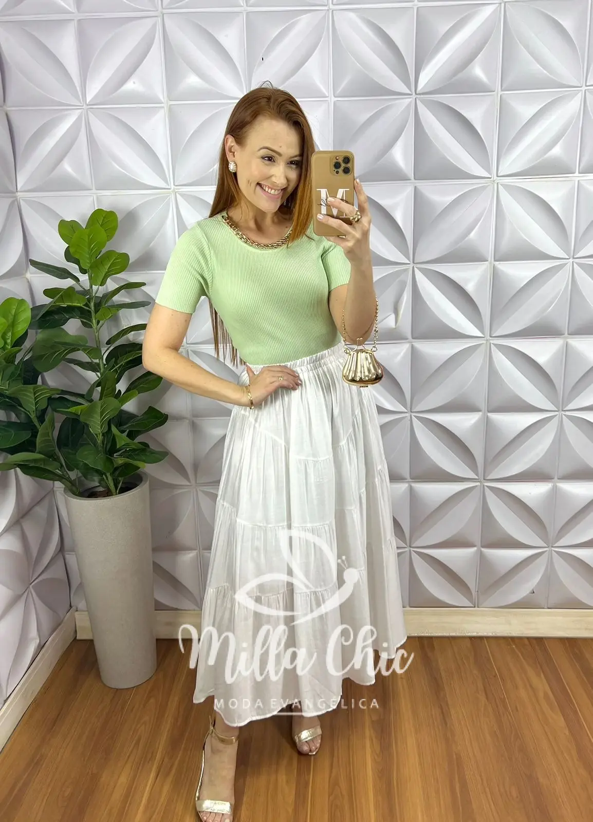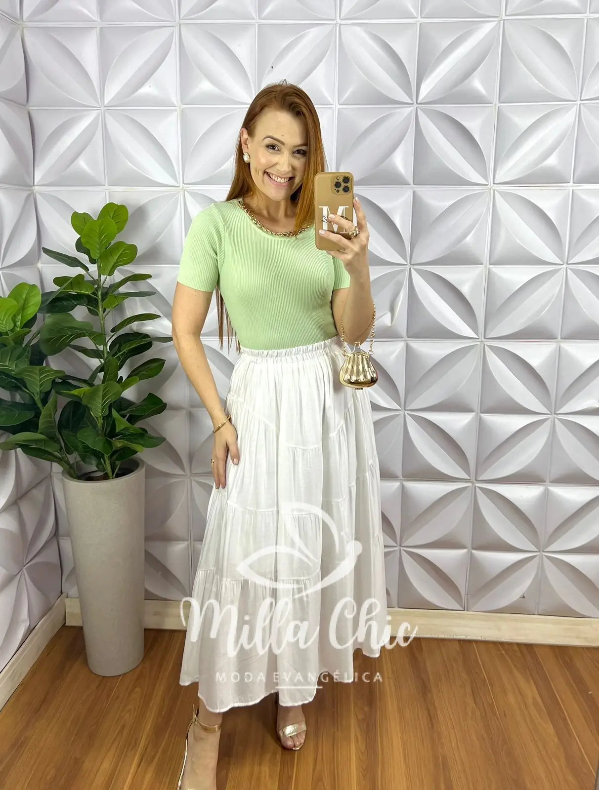 Blusa Tricot Modal Gola U Com Colar Corrente Dourada Estilo Crooped Larissa – Verde