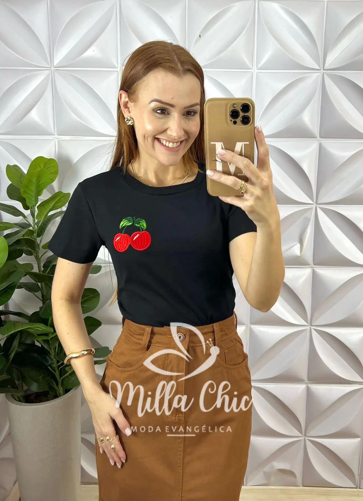 Essa tem o bordado feito a máquina da cereja . Super moderna e delicada .