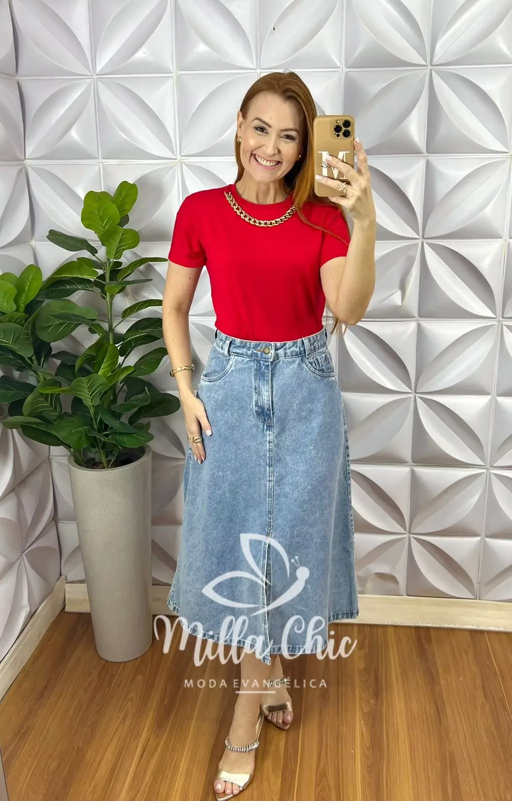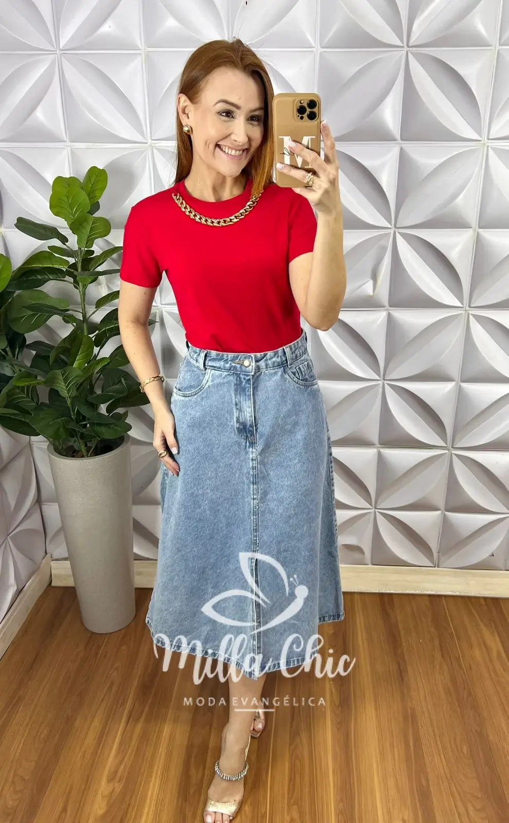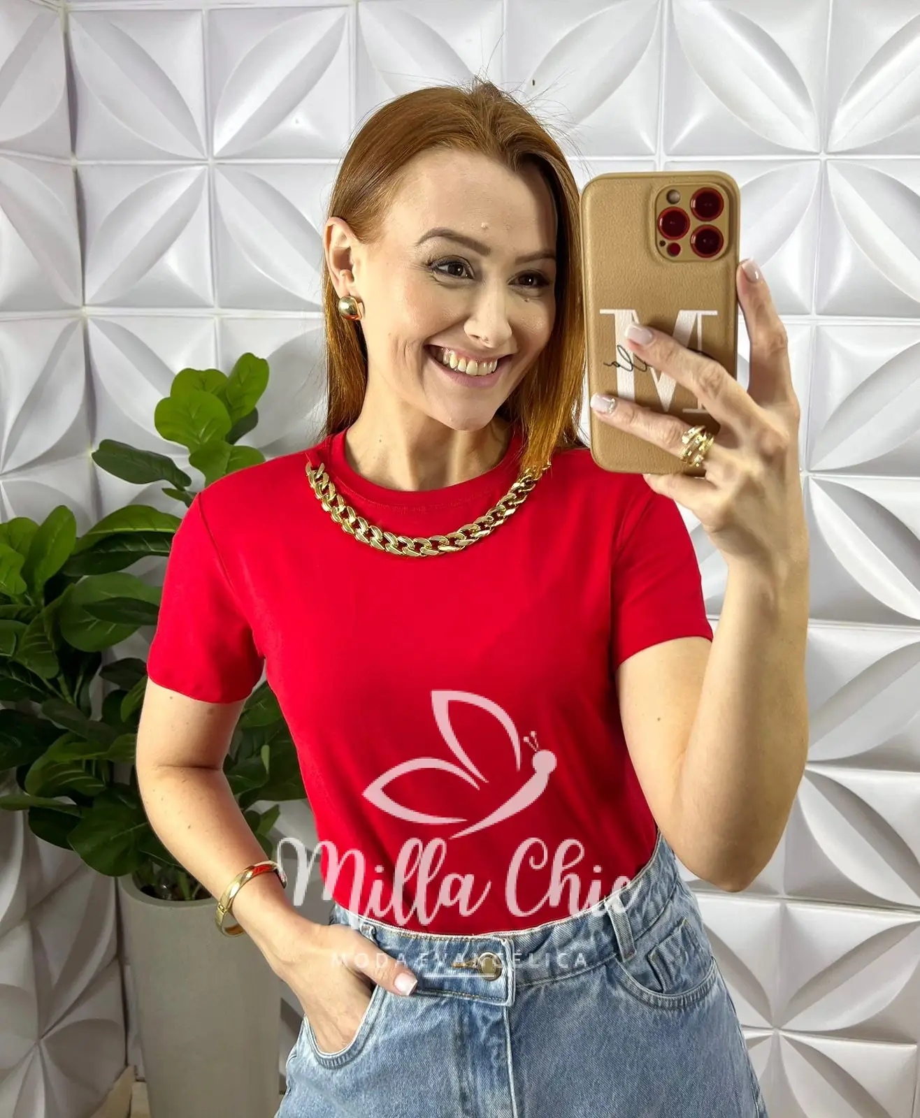Blusa Viscolycra Com Colar Dourado Ana Beatriz - Vermelho - Milla Chic