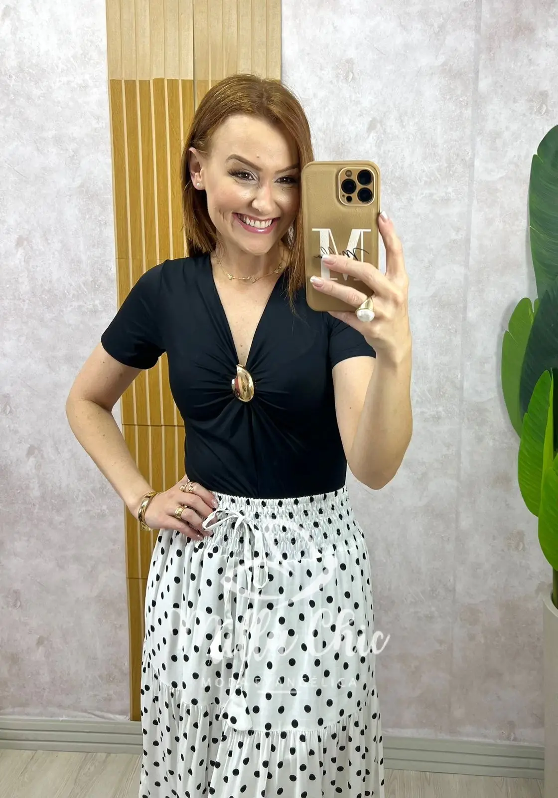 - Possui uma modelagem justa com manga mais curta com fivela orgânica que dá toque um charme e elegância