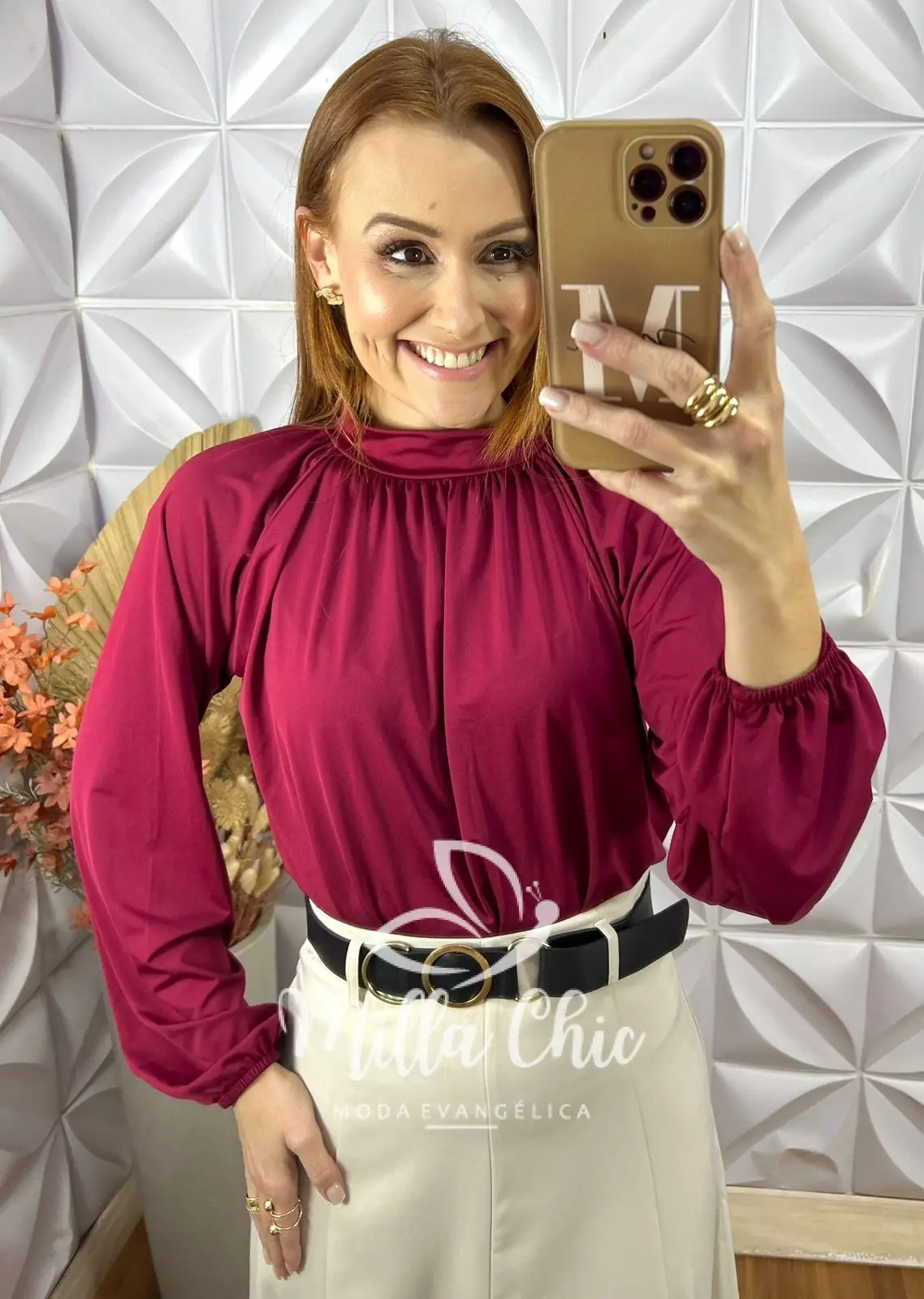 A modelagem em manga longa, com leve franzido no pescoço traz um ar refinado à peça, que transita com facilidade entre produções casuais e sofisticadas. Conta ainda com fecho em colchete e elástico na parte inferior, facilitando o vestir e ajustando perfeitamente à silhueta.