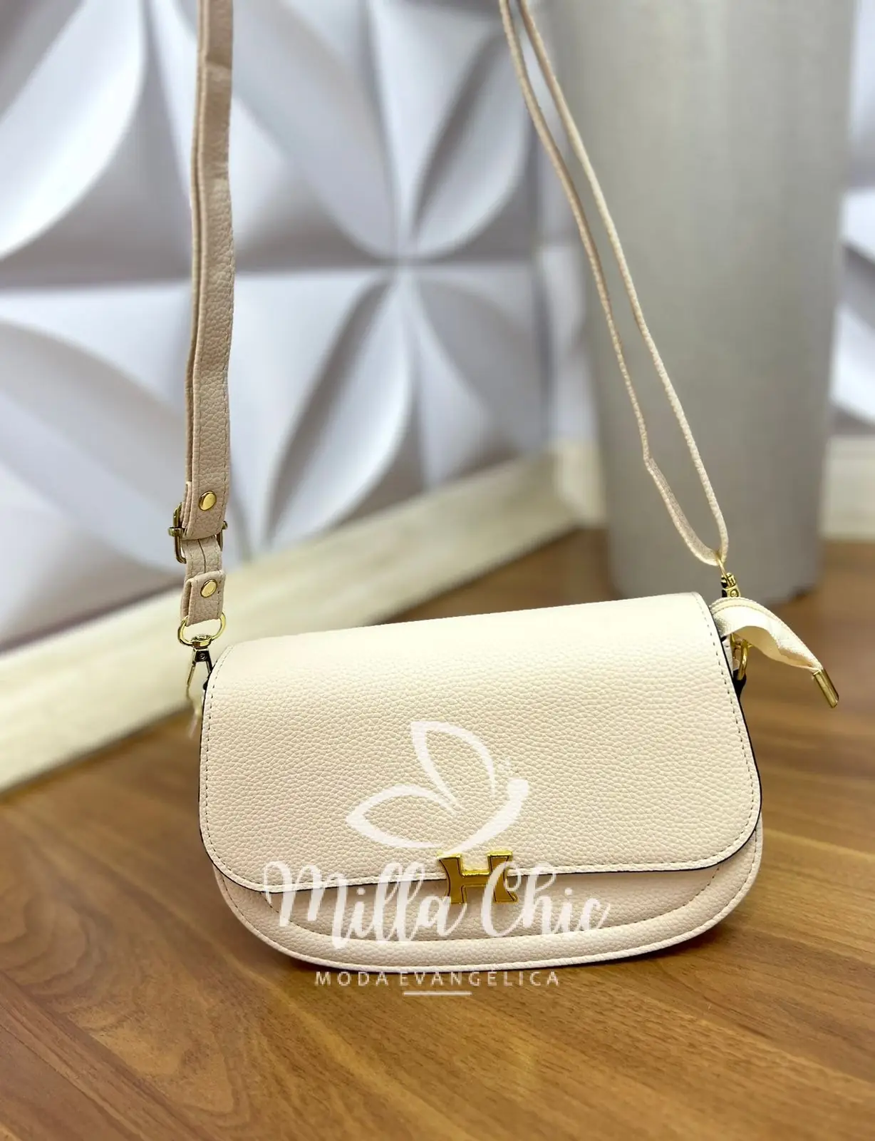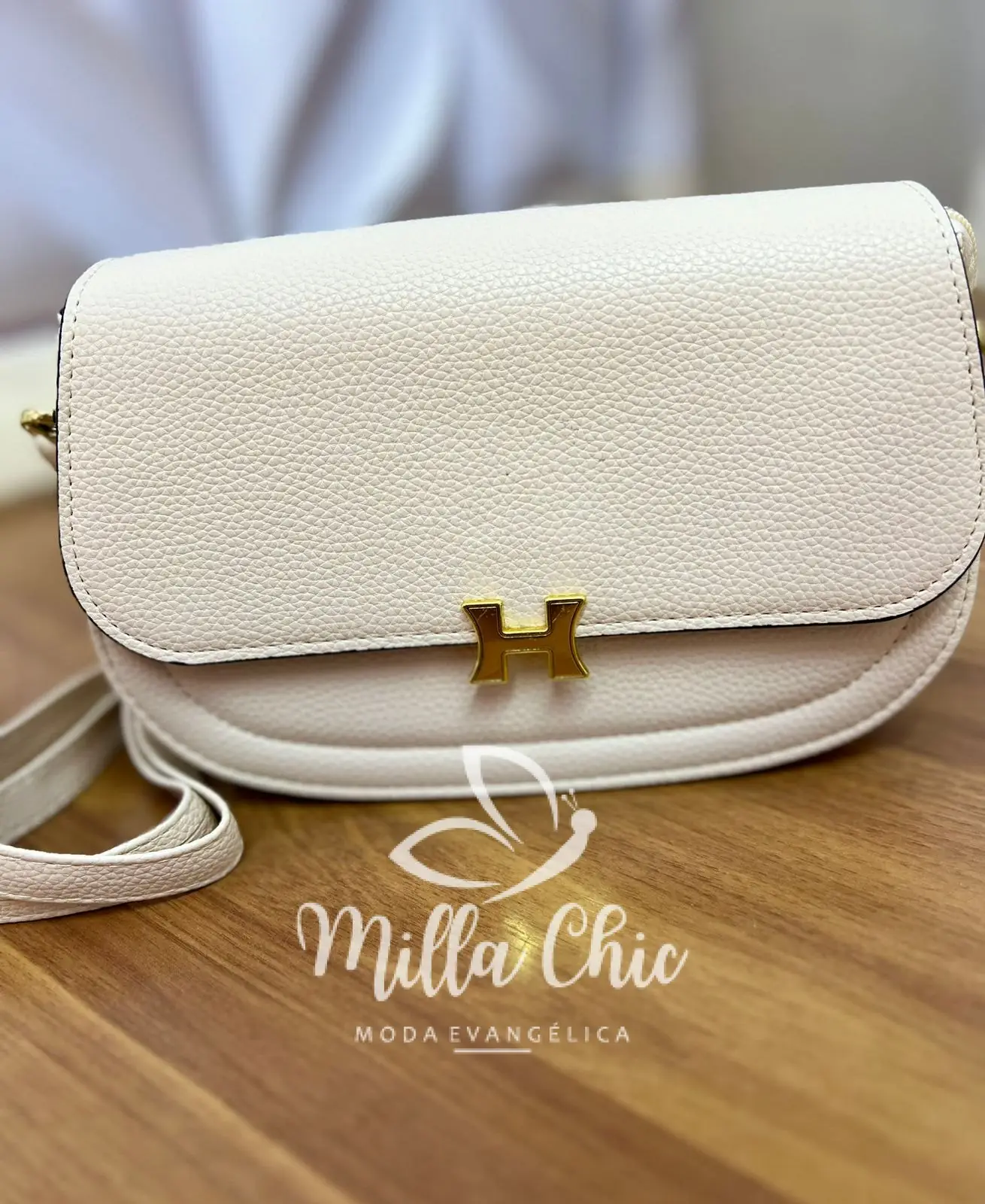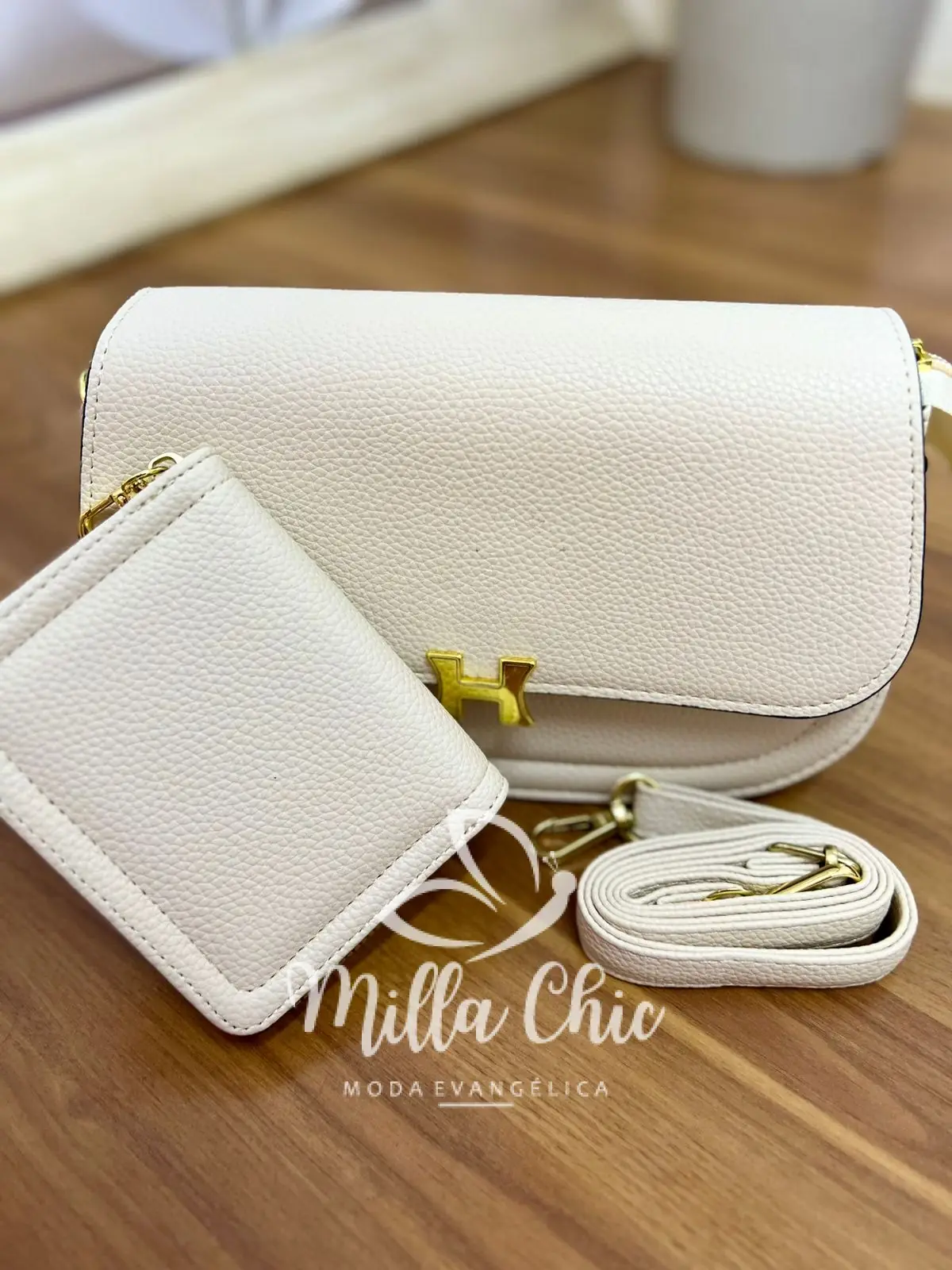 Possui: alça para usar transversal ou lateral, Com fecho dourado H que esta um charme! com imã para fechar, zíper por dentro, com tamanho ideal. Acompanha carteira.