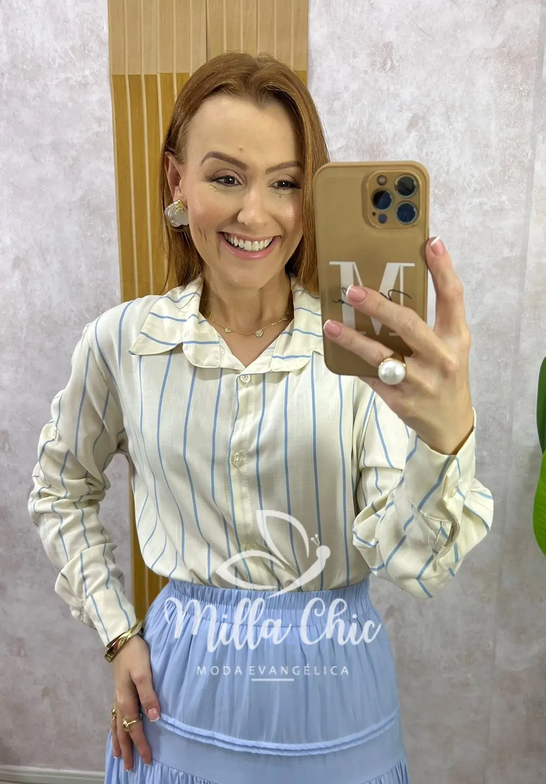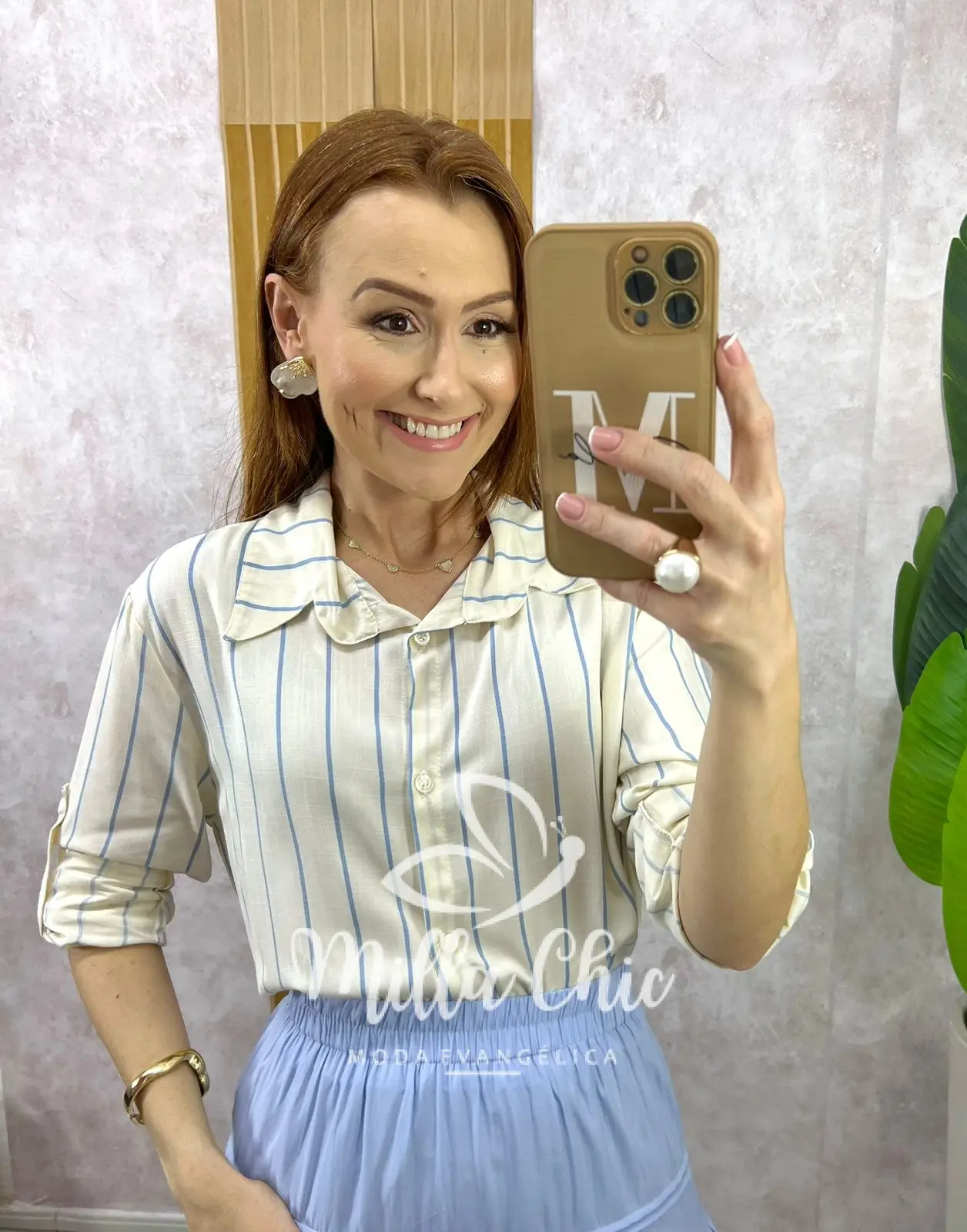 A camisa Aline é uma camisa que passa uma elegância sem igual. Uma peça atemporal e clássica, cheia de estilo e que te deixa muito chic.
