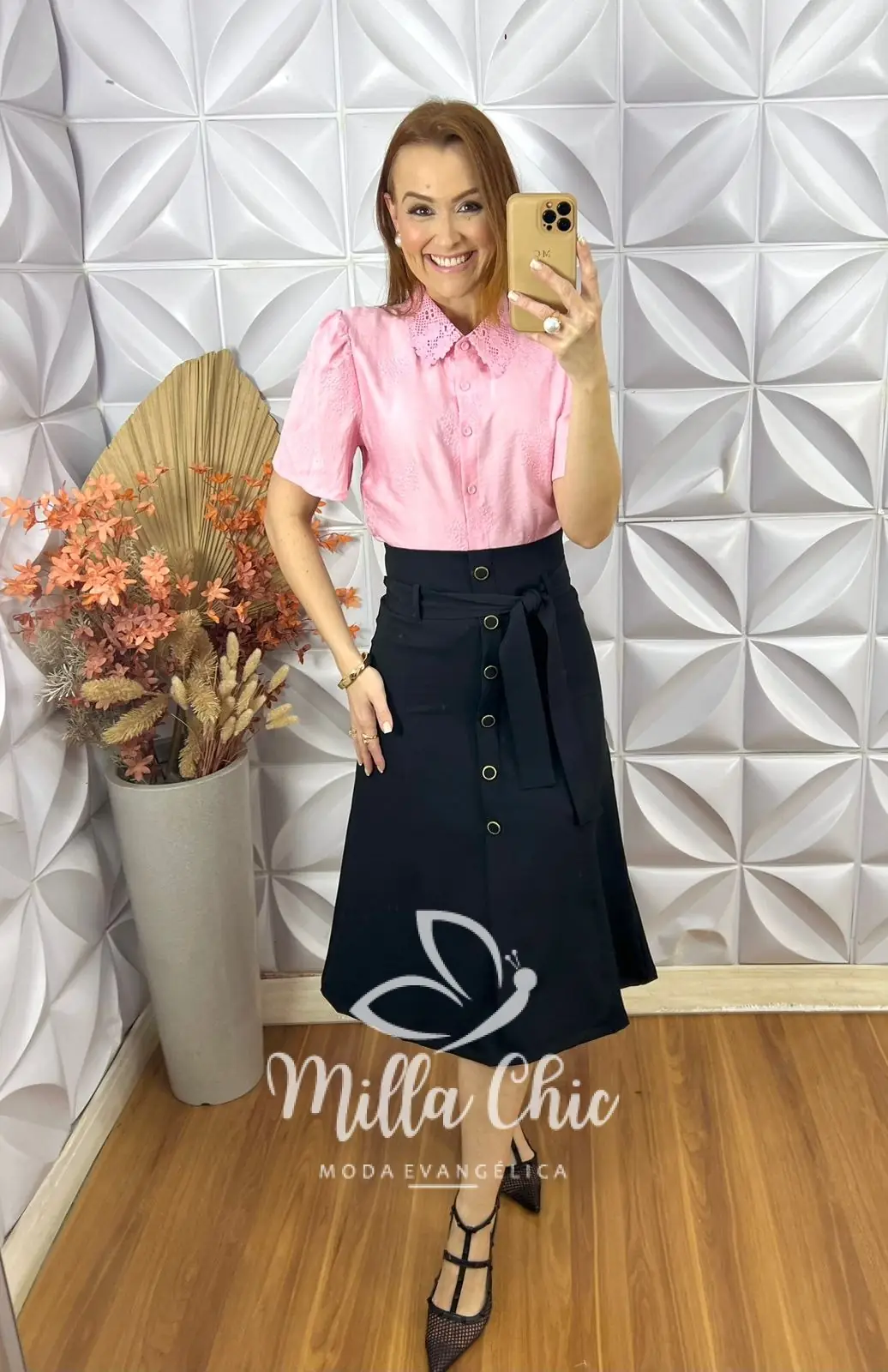 Camisa Domênica Gola Guipper - Rosa - Milla Chic