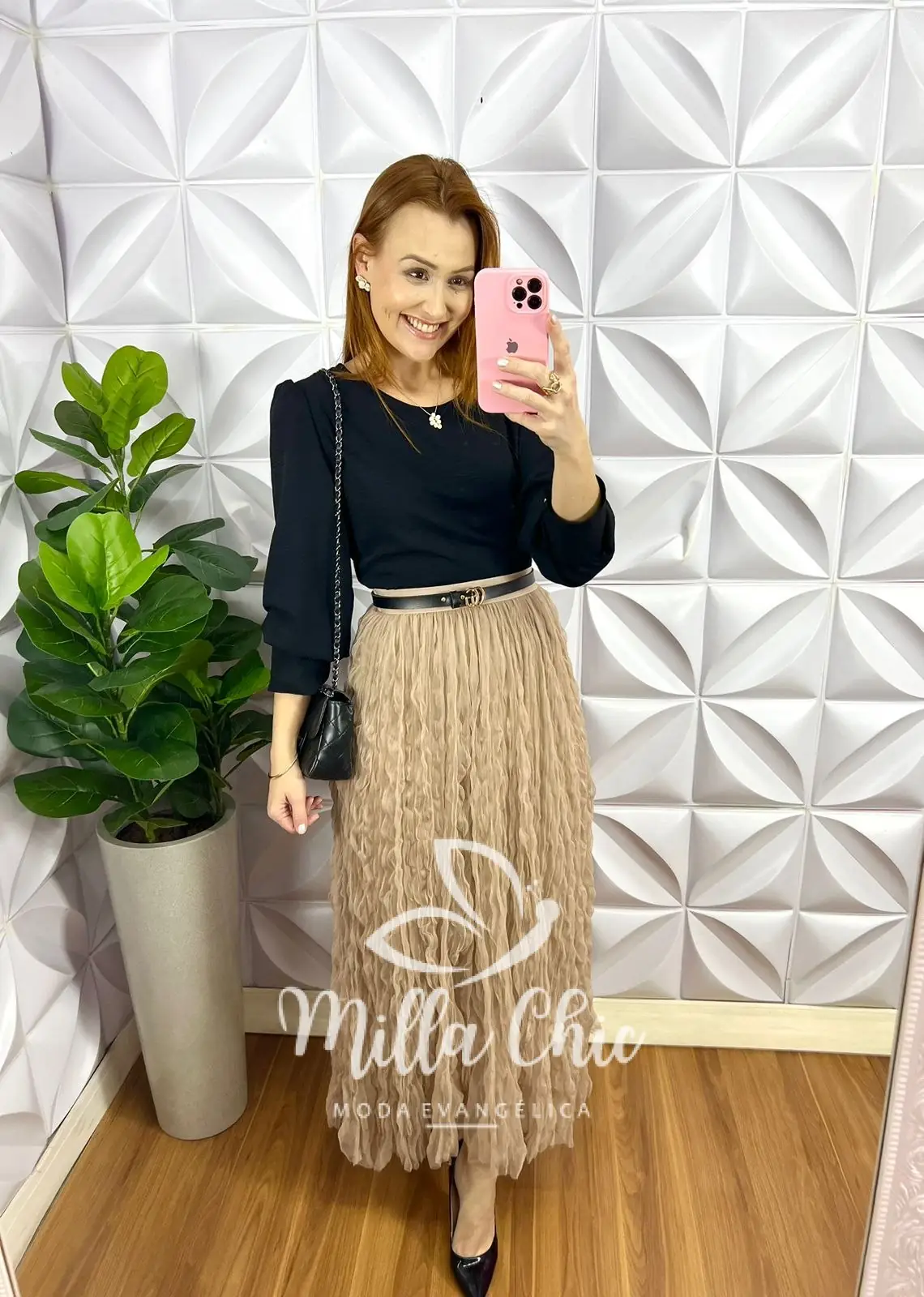 Camisa Dunna Manga Longa Botão Dourado No Punho Karen - Preta - Milla Chic