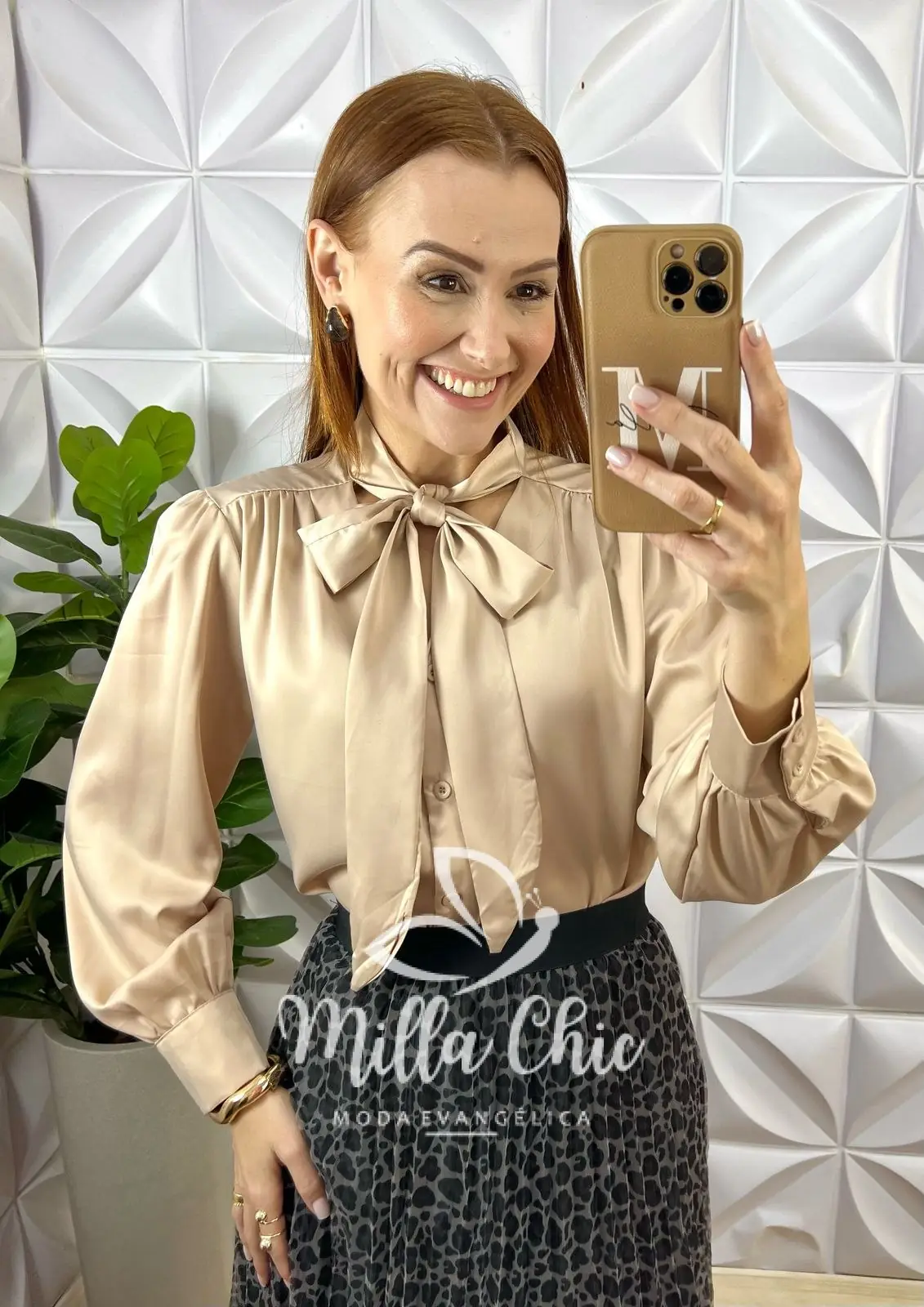 Ela conta com a sofisticação além do tecido a gola laço que passa romantismo , feminilidade e informação da moda.