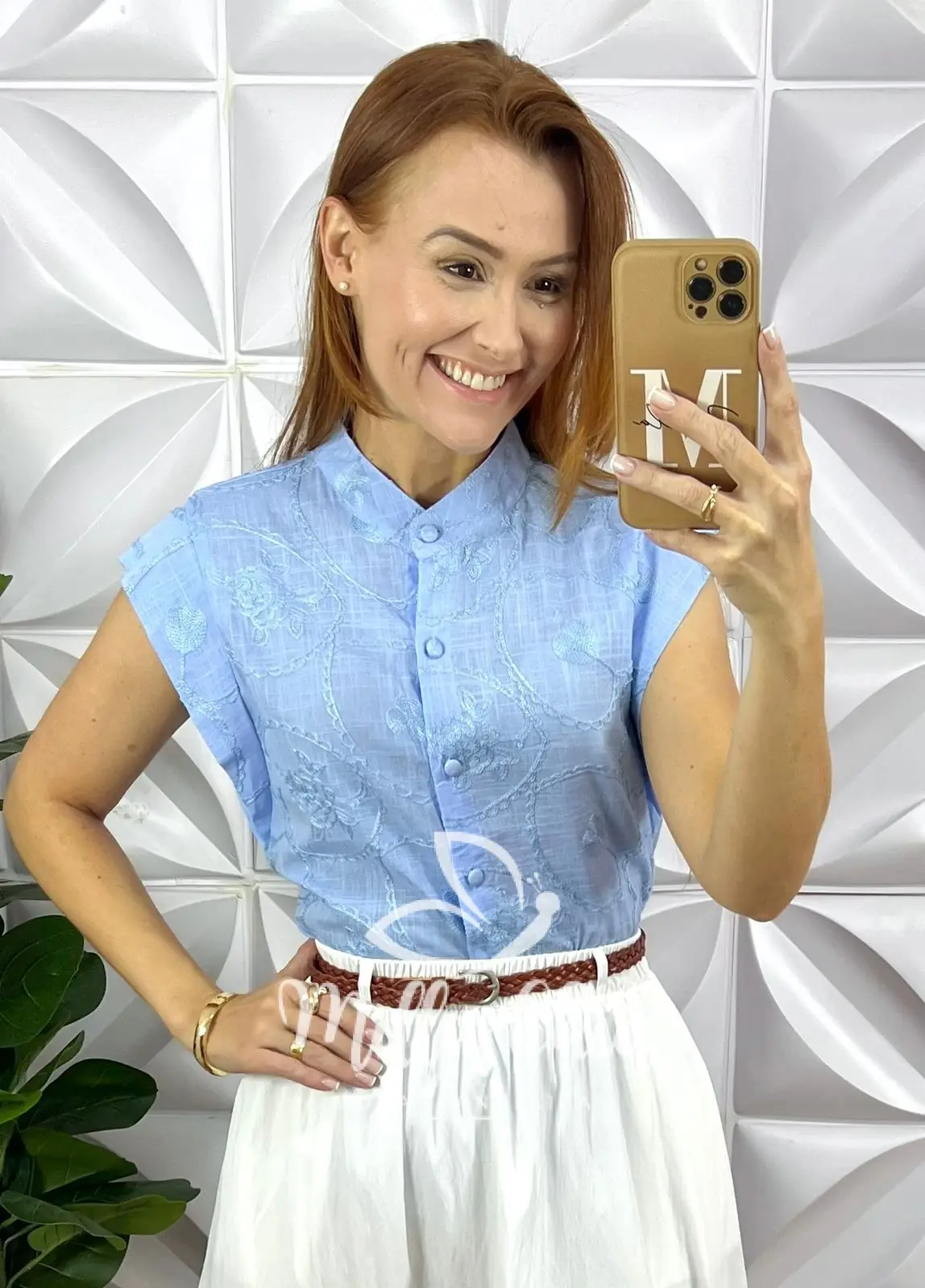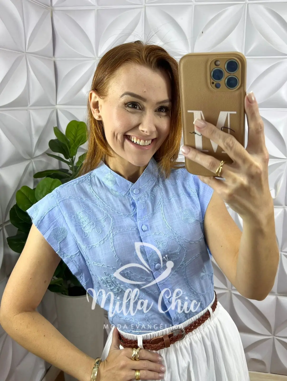 Camisa Gérbera Cambraia Linho - Azul - Milla Chic