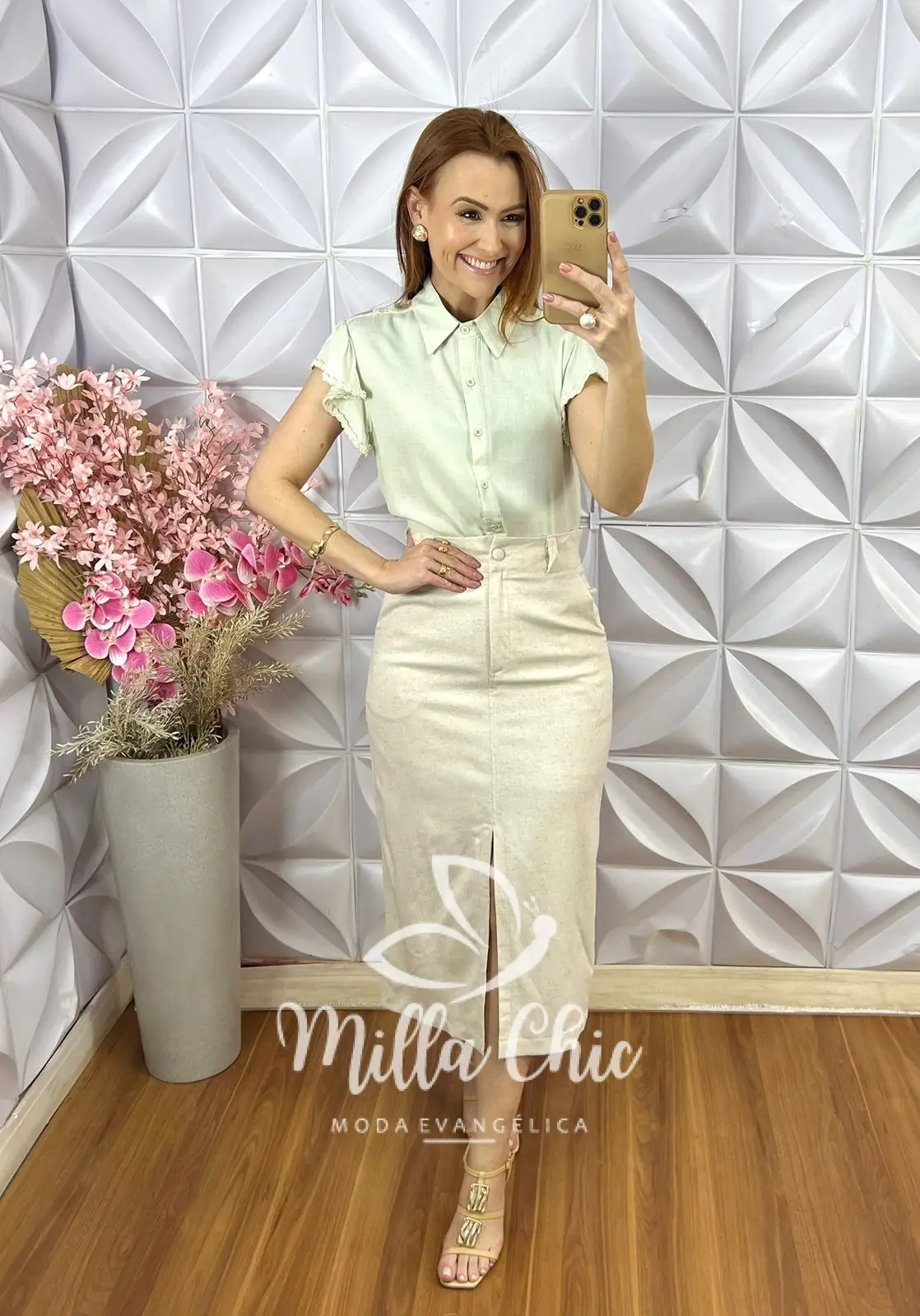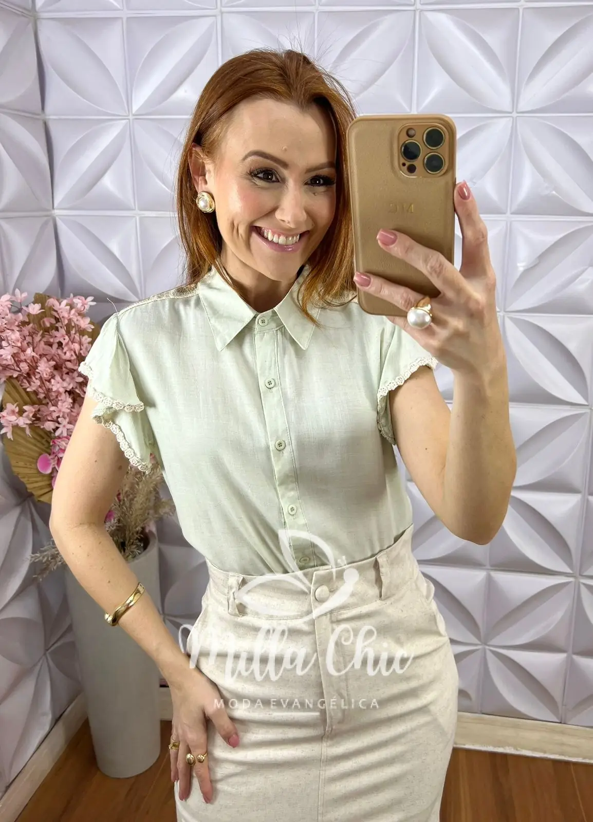 Camisa kiara em Cambria de Linho – Verde Hortelã