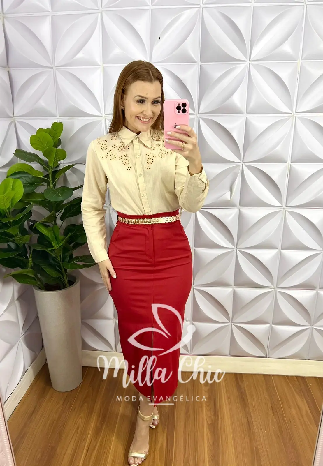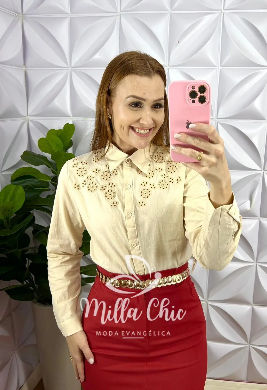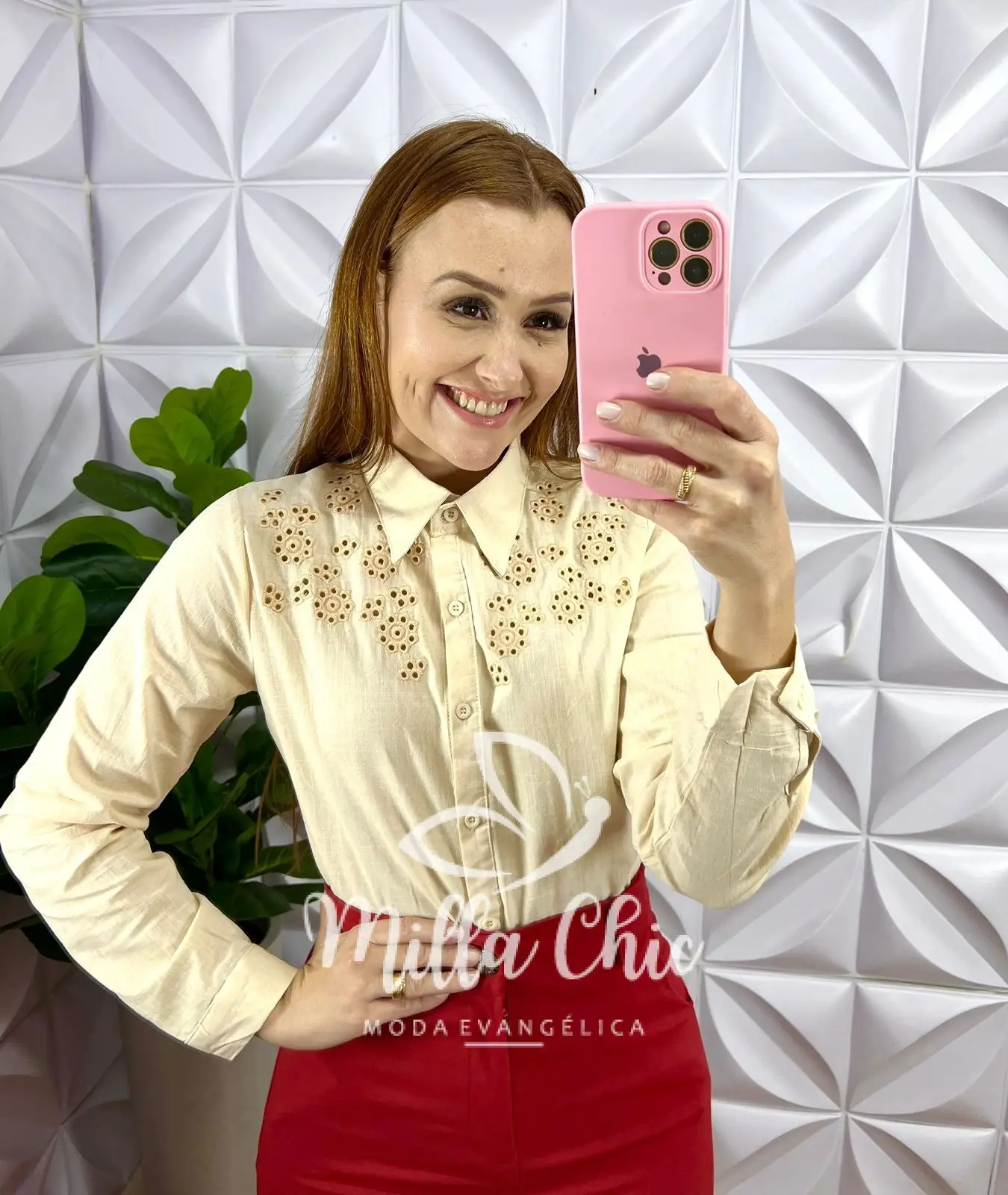 Camisa lançamento toda no tecido Linho com bordado de Richilieu floral que está uma delicadeza e uma chiqueza!