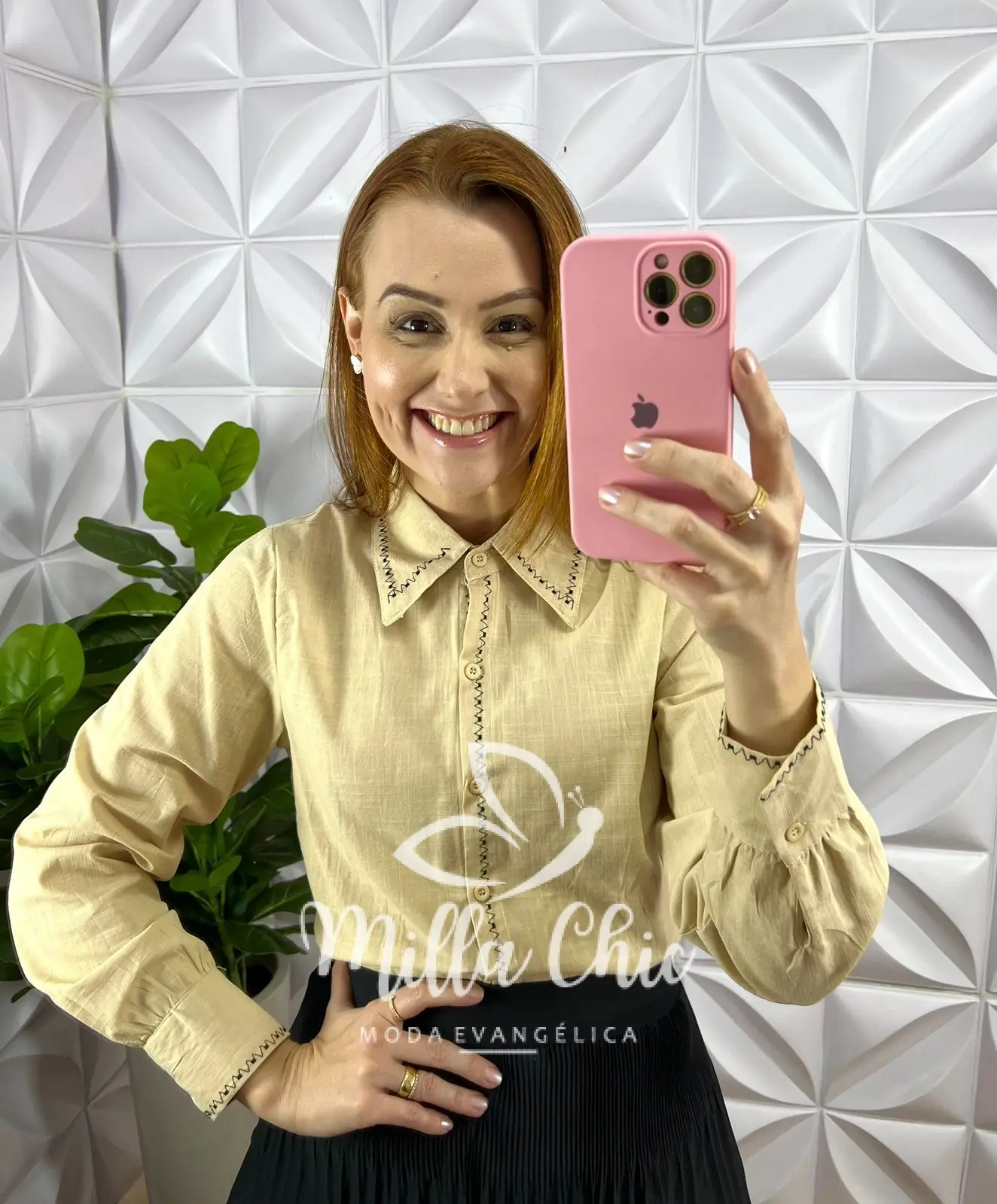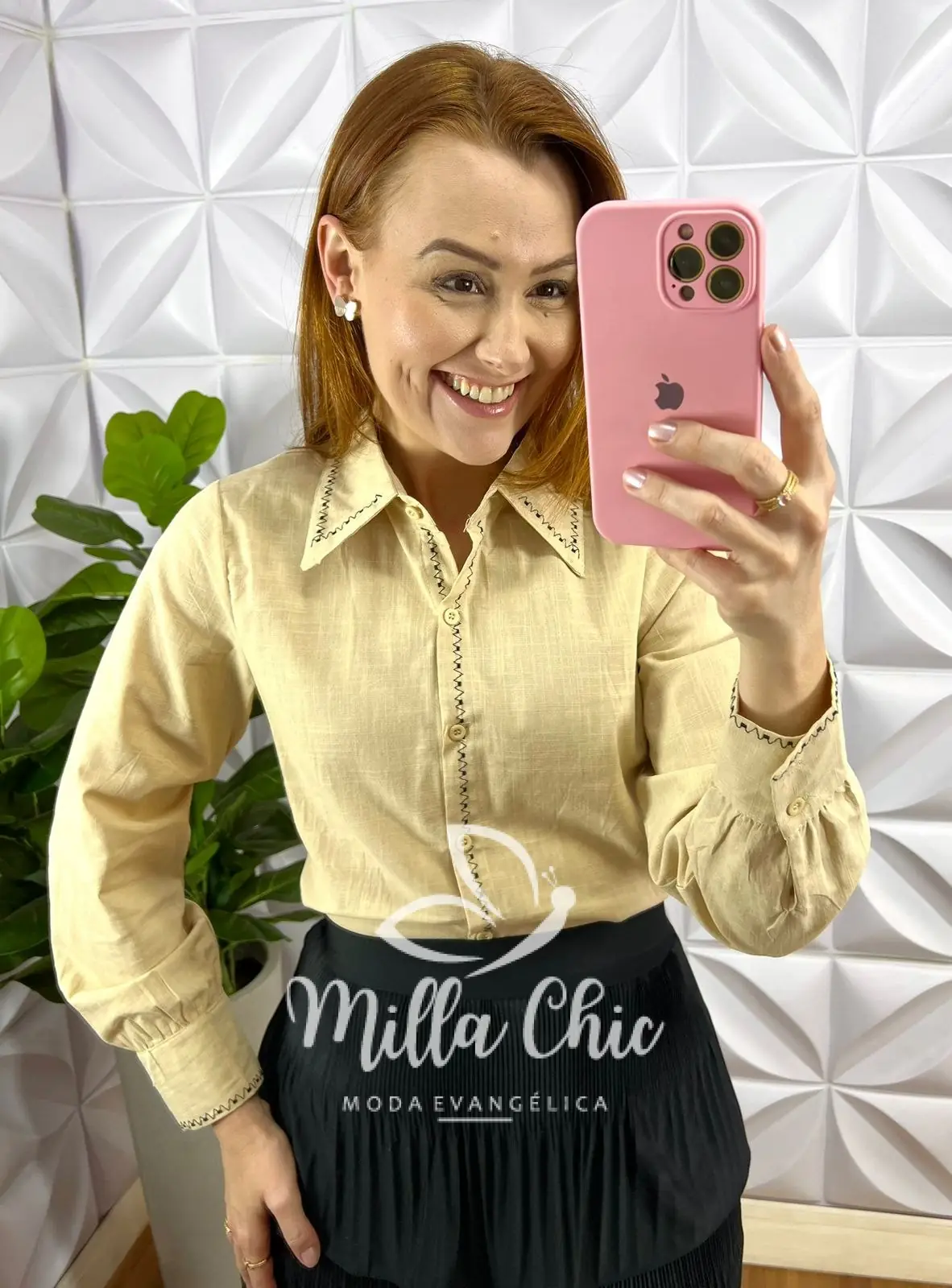 – Bordado na gola e no punho;