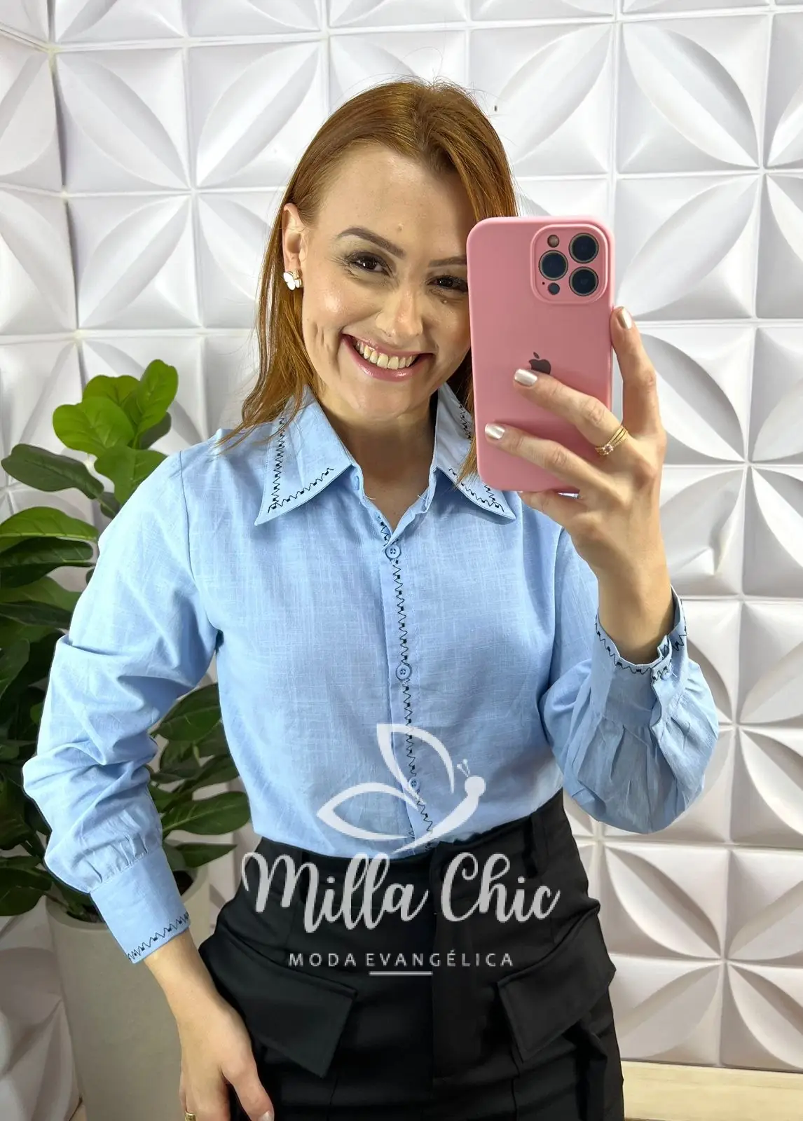 – Bordado na gola e no punho;