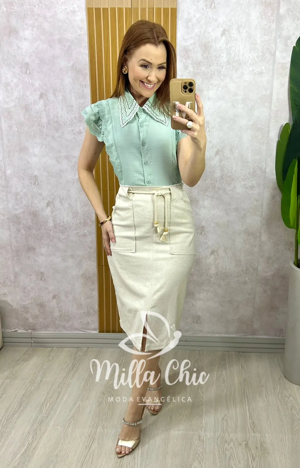 Botões funcionais, a camisa Louise vai deixar o seu look mais lindo .