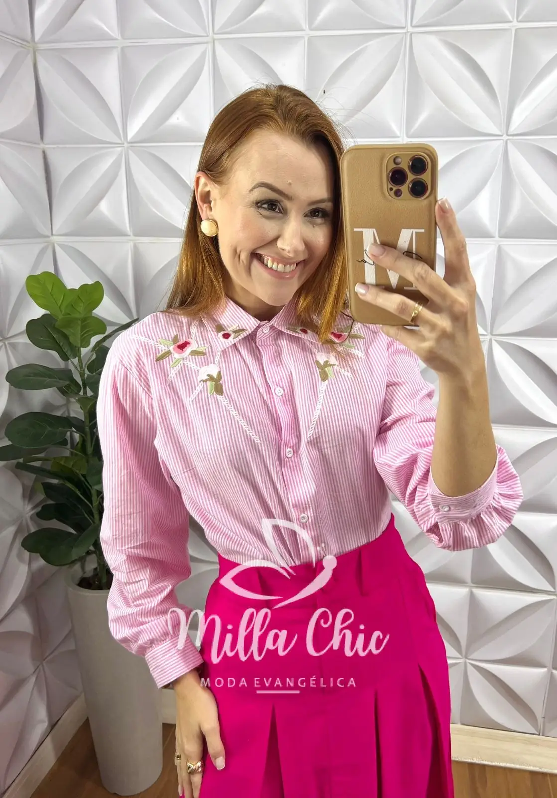 Listras é atemporal não cai de moda e deixa você muito elegante . Uma camisa clássica com o toque do bordado que deixou ela delicada e mais chic .