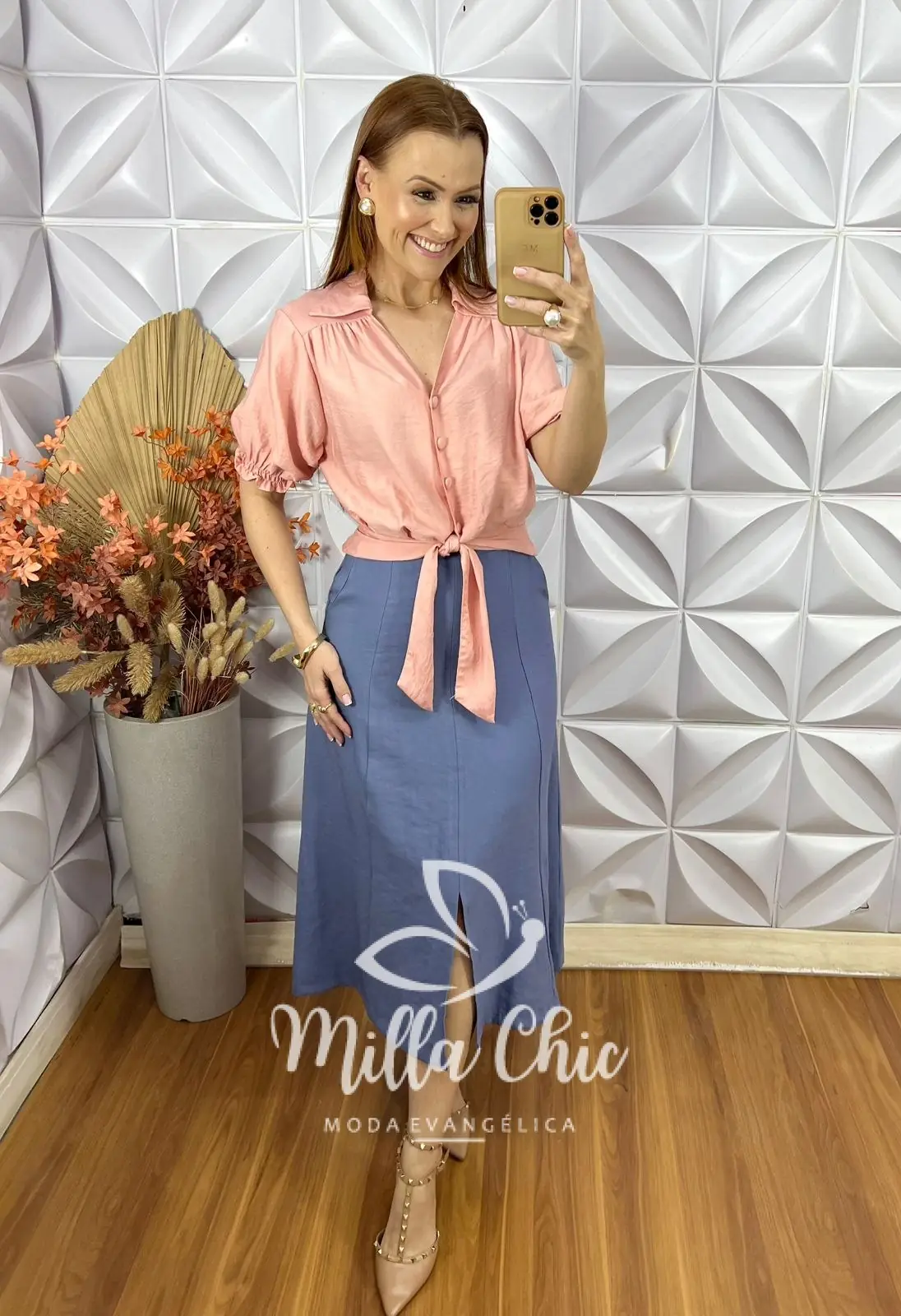 Uma opção linda para minhas irmã usarem é com saia jeans. Vai ficar um arraso.