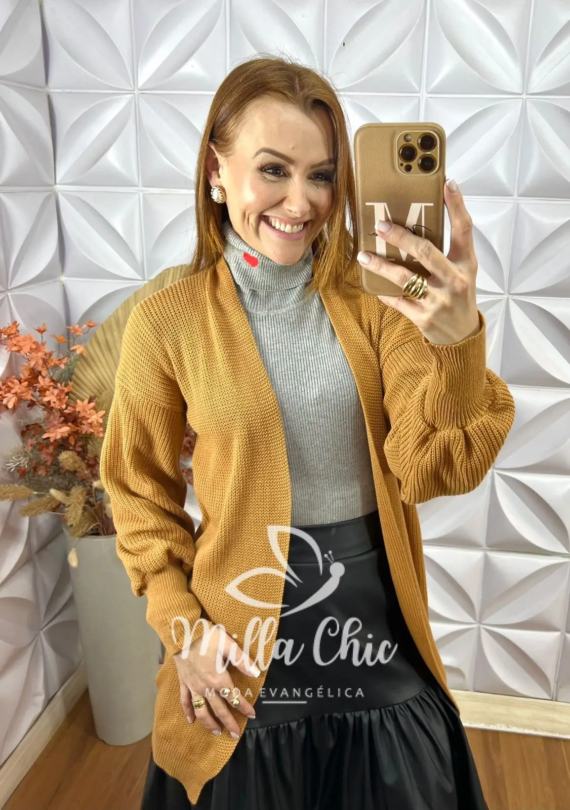 Cardigan Europa Em Tricot - Caramelo - Milla Chic