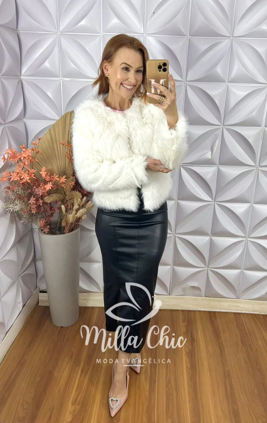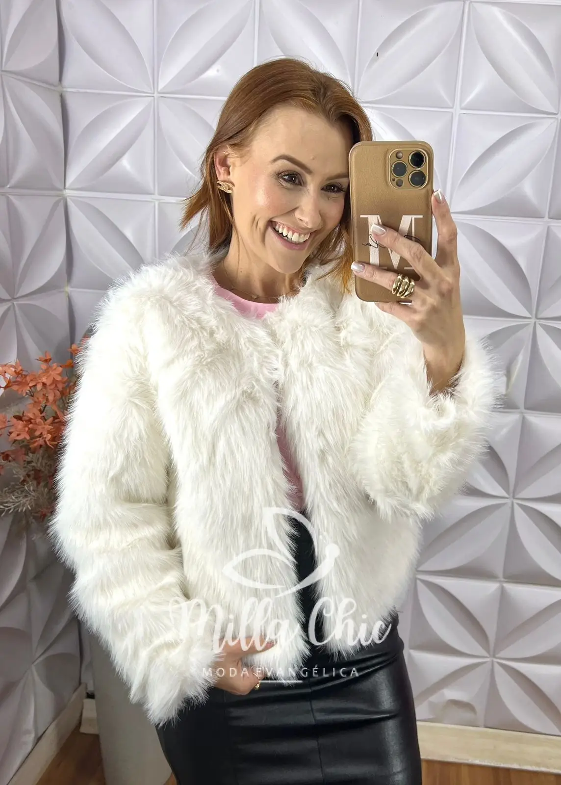 Casaco Áurea Em Pelúcia-  Branco - Milla Chic