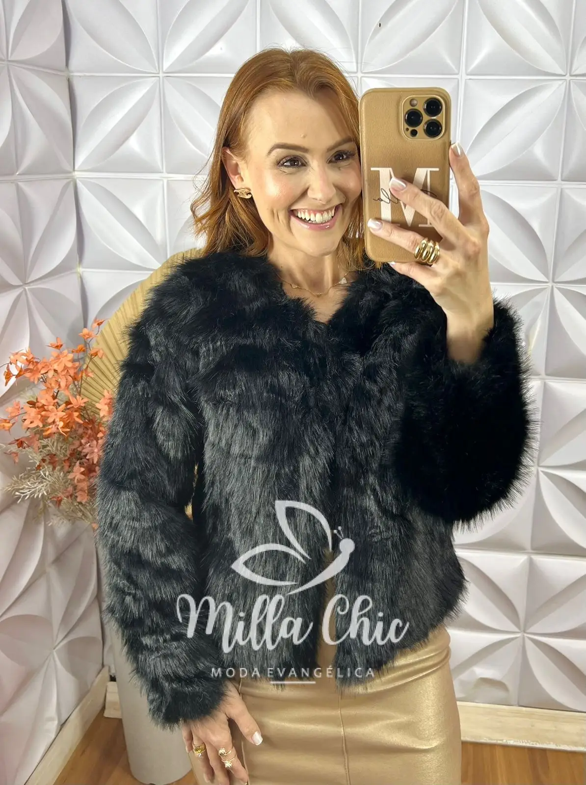 Casaco Áurea Em Pelúcia-  Preto - Milla Chic