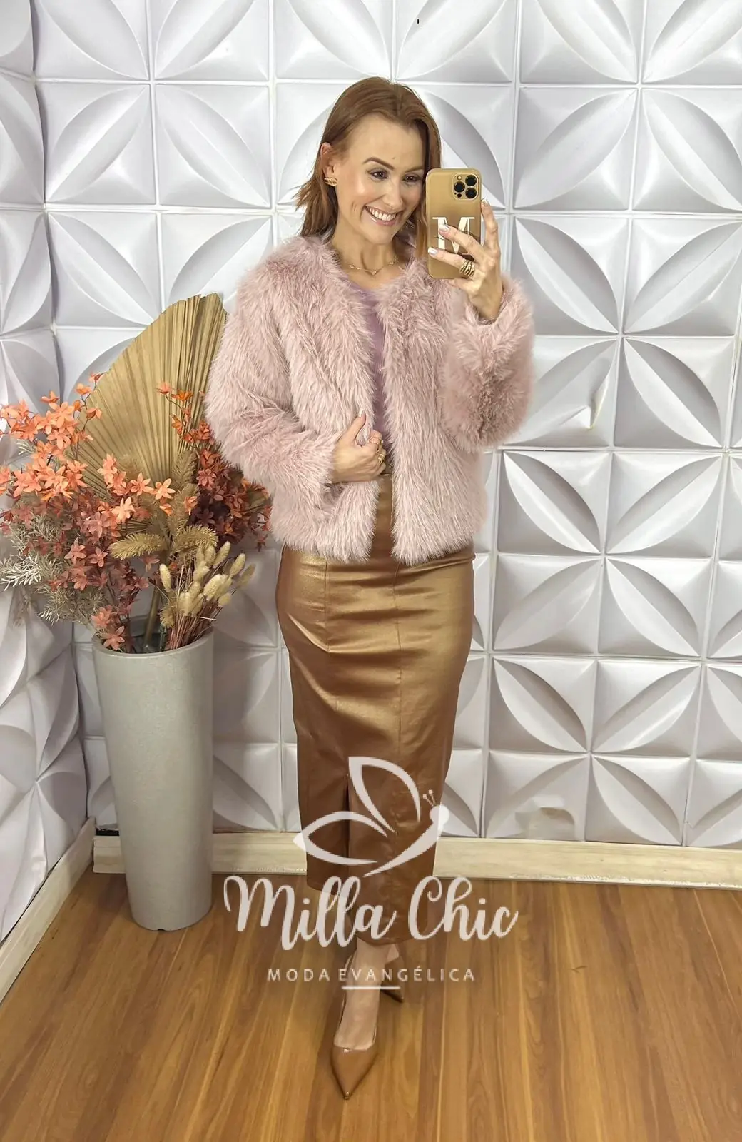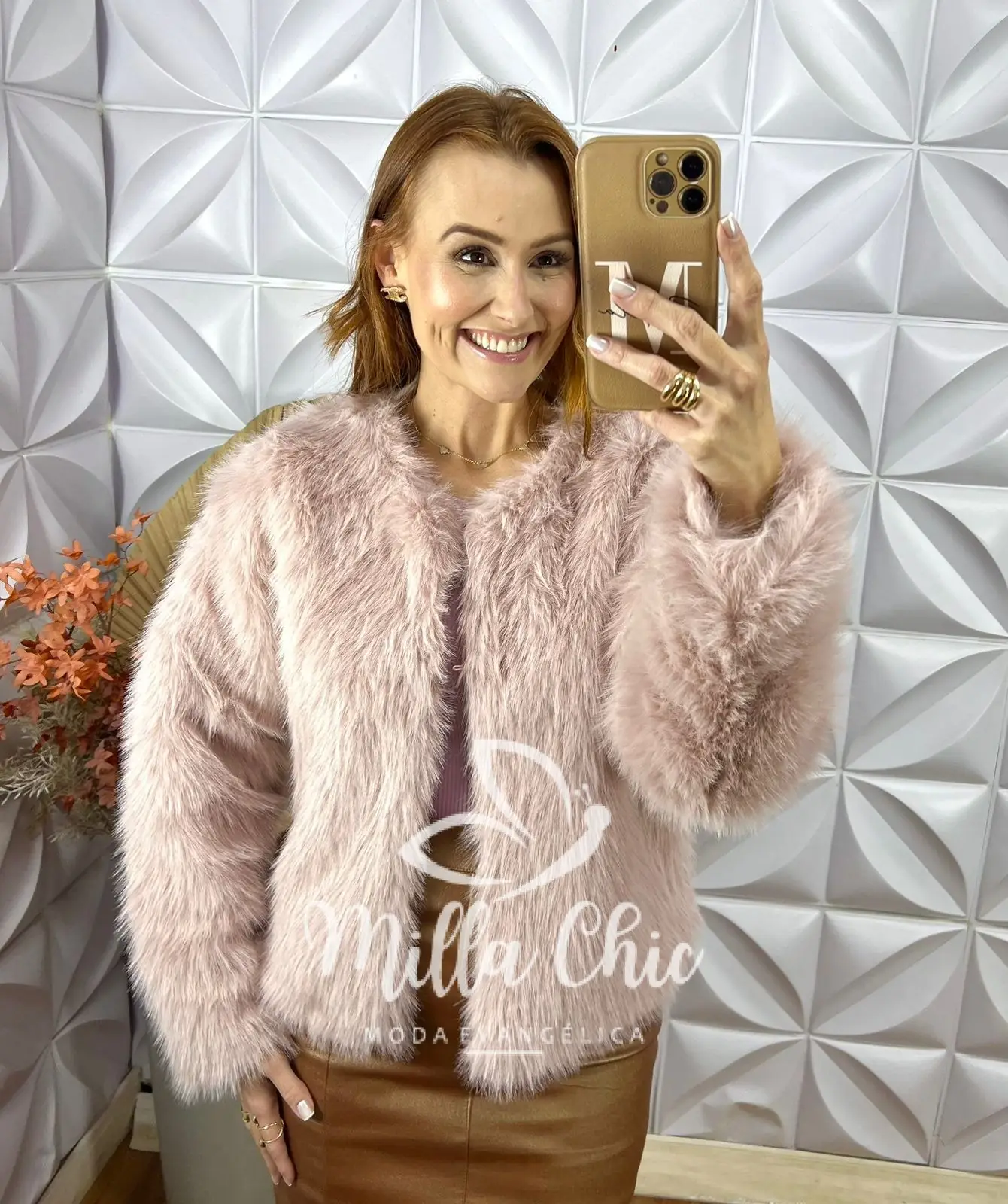 Casaco Áurea Em Pelúcia-  Rosa - Milla Chic