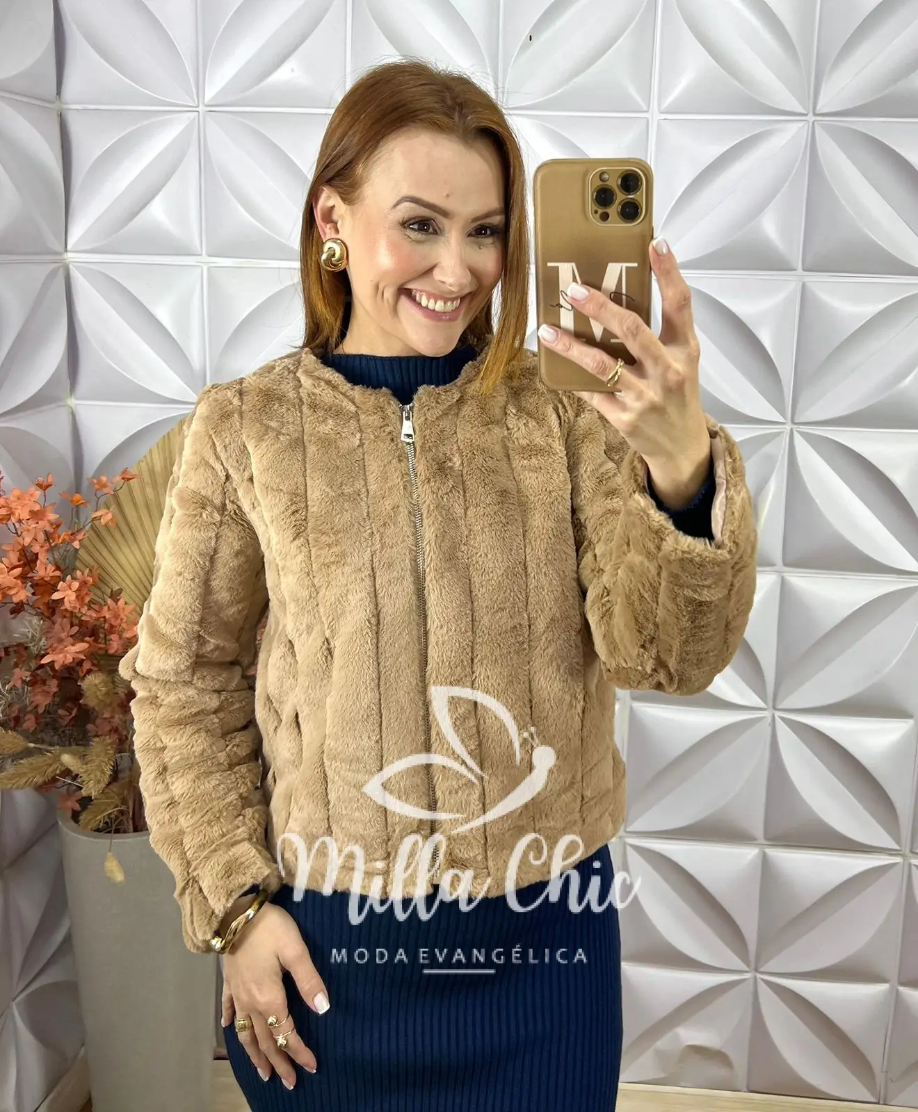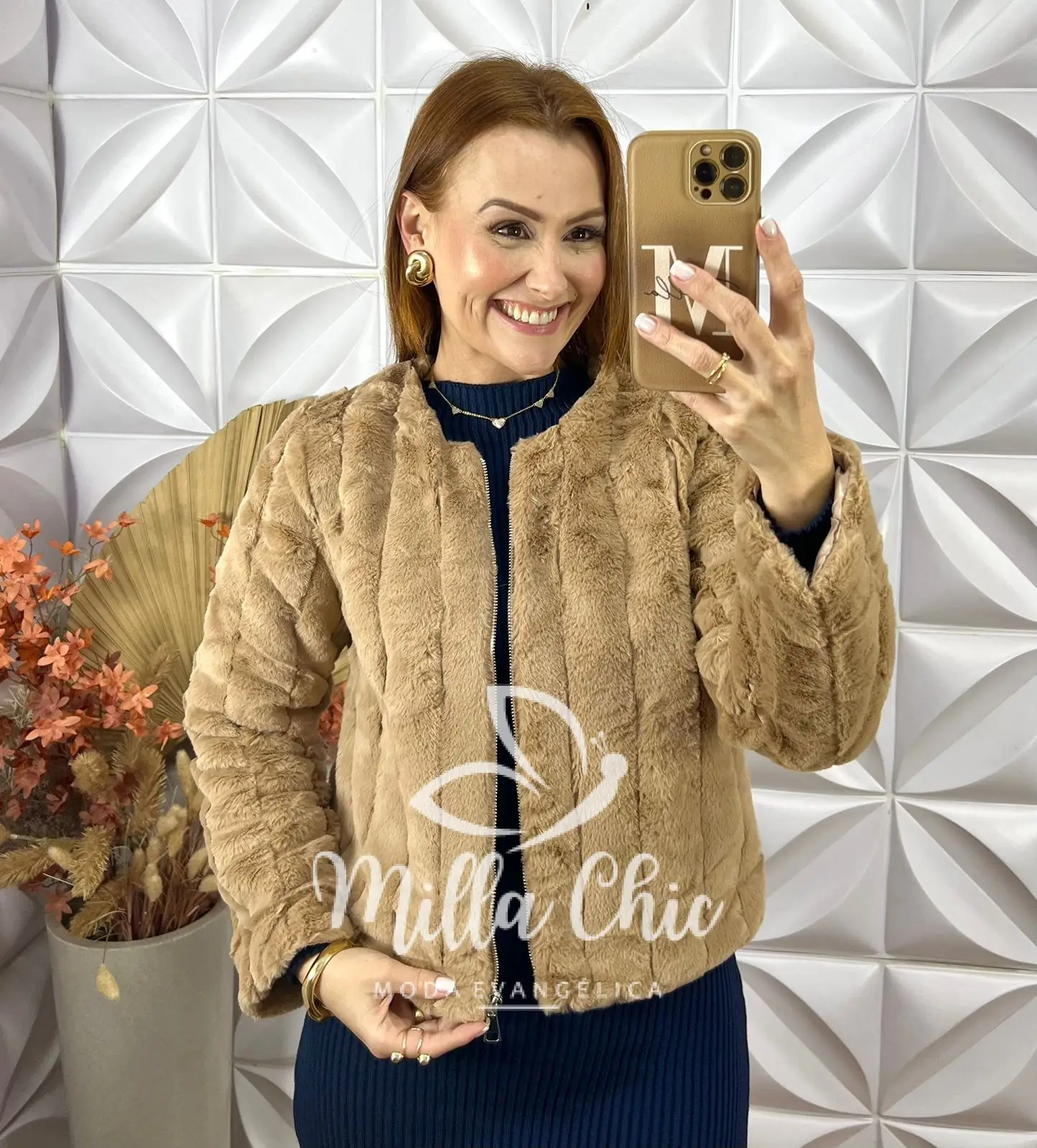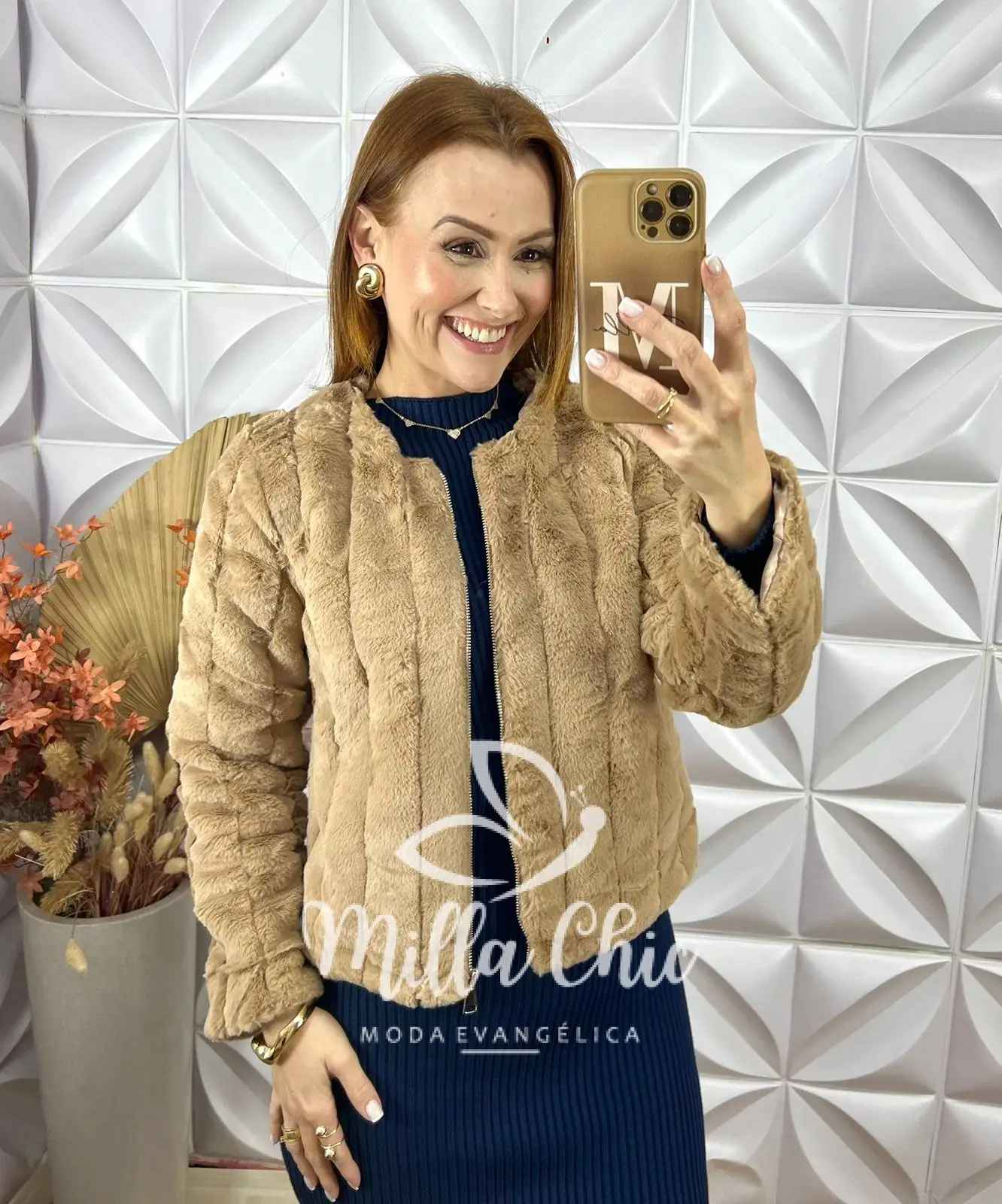 Casaco Marina em pelos nude cappucino - Milla Chic