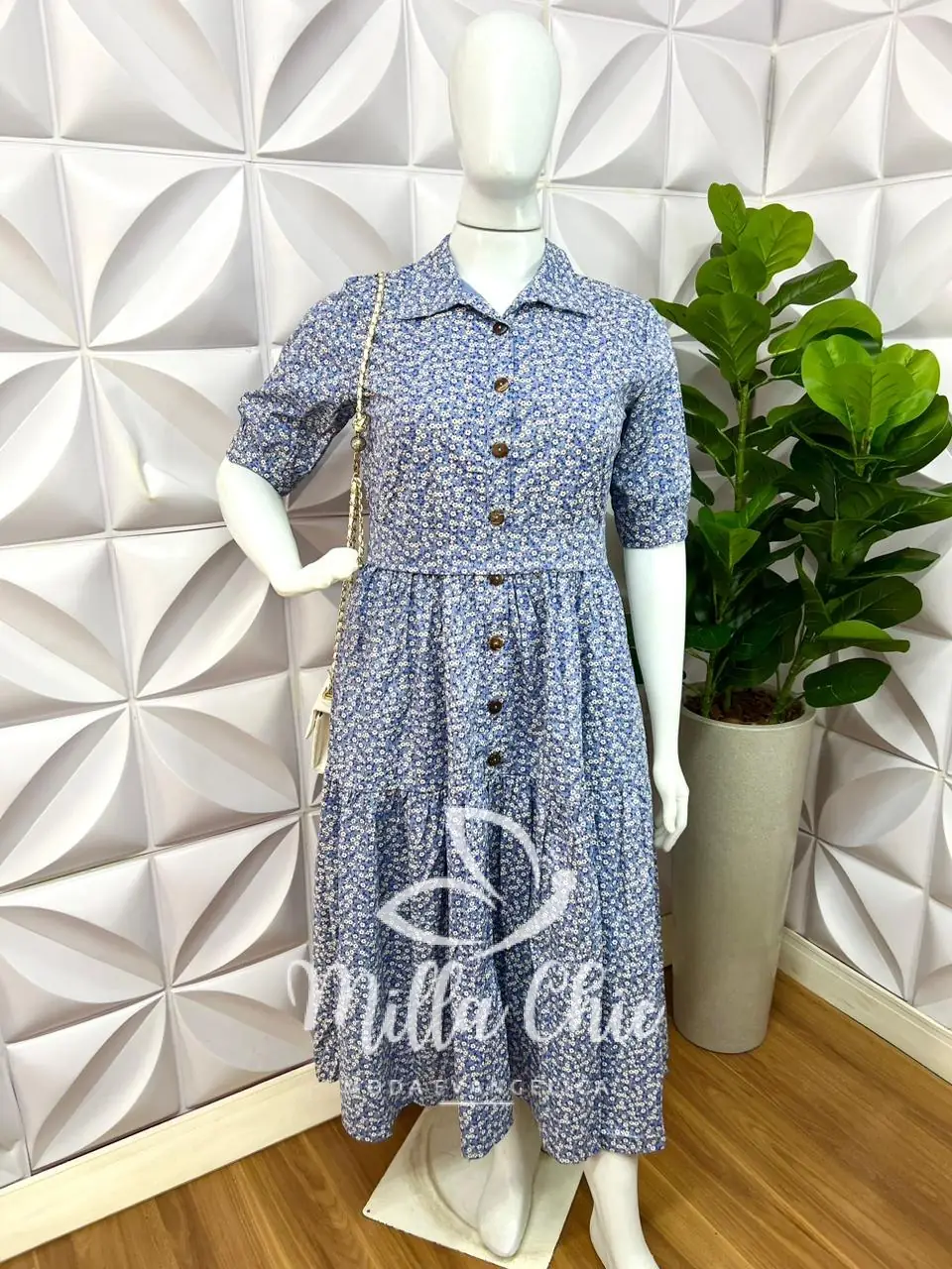 Chamise Tricoline Floral Pluss Lary - Azul - Milla Chic