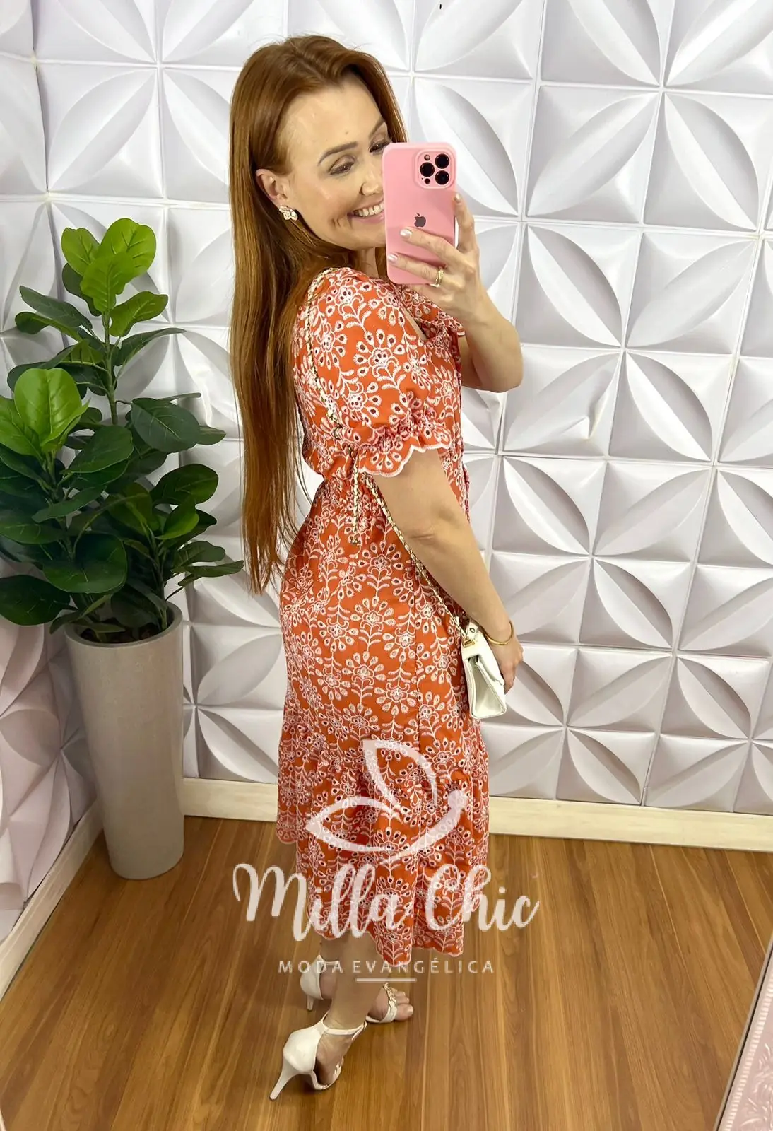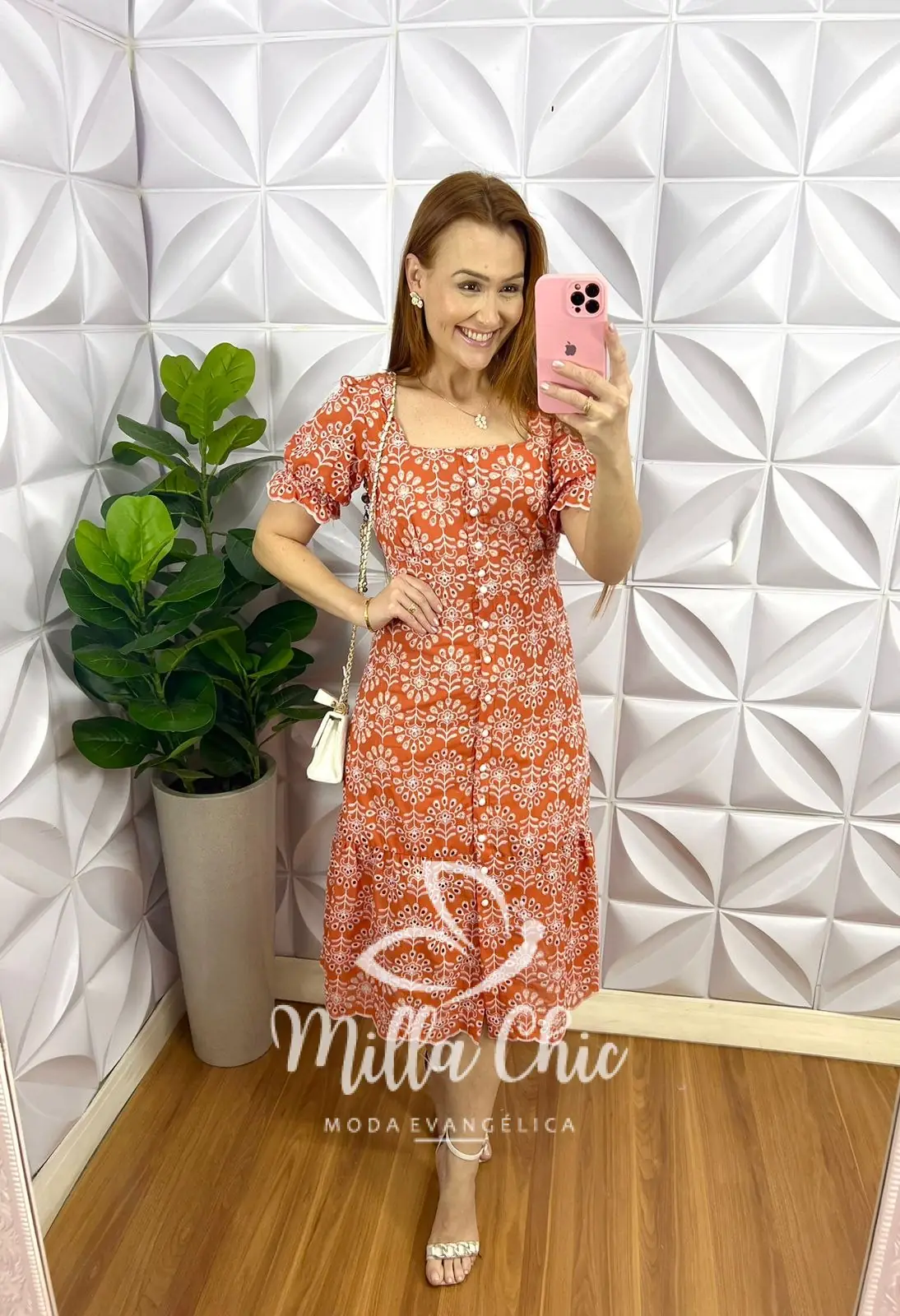 Chemise Laise Manga Princesa Botões De Perola Lavínia - Laranja - Milla Chic