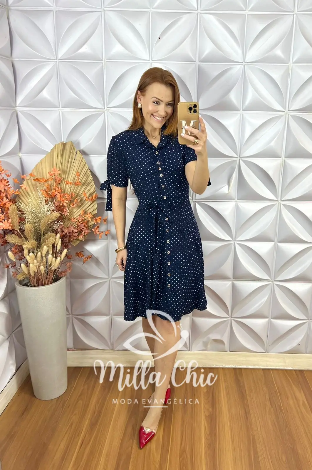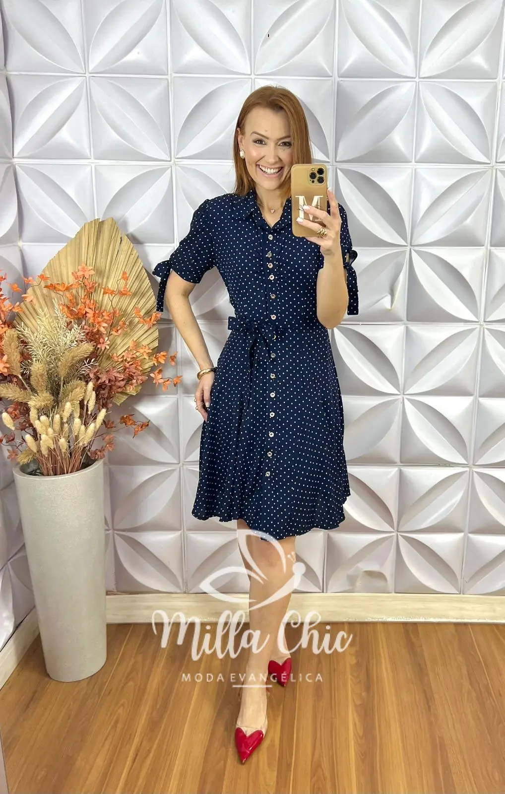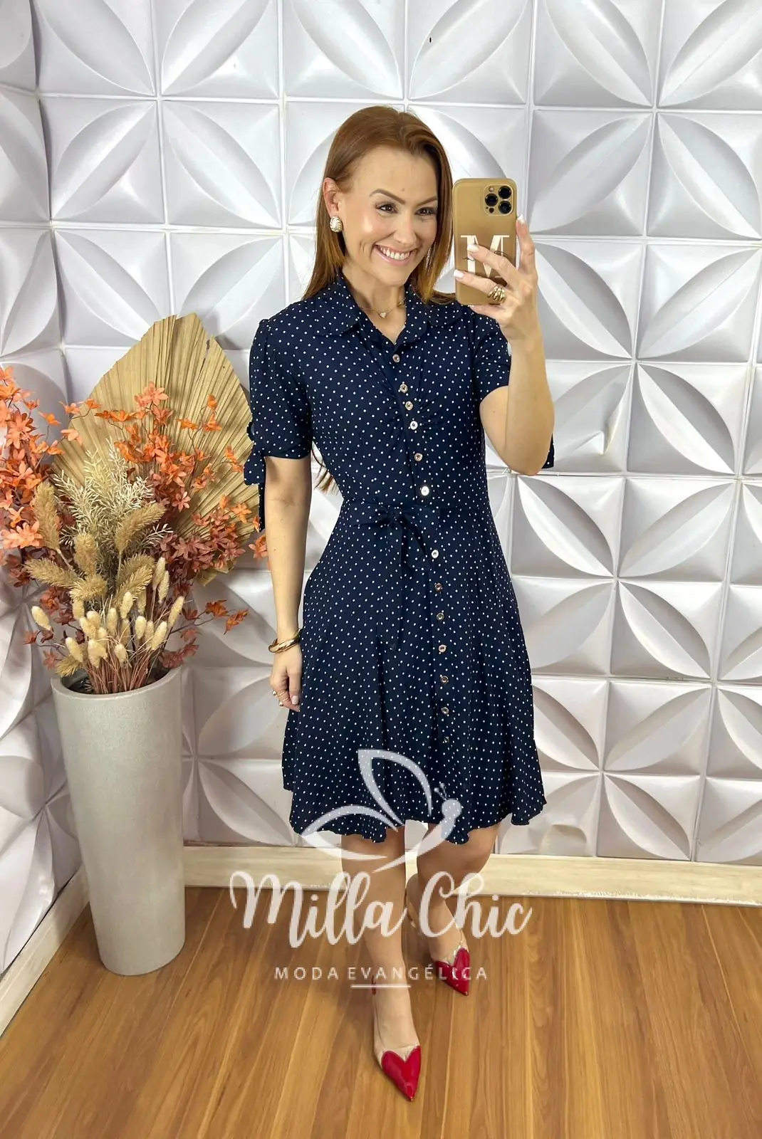 Chemise Pérola Em Viscolinho Póa - Azul Marinho - Milla Chic