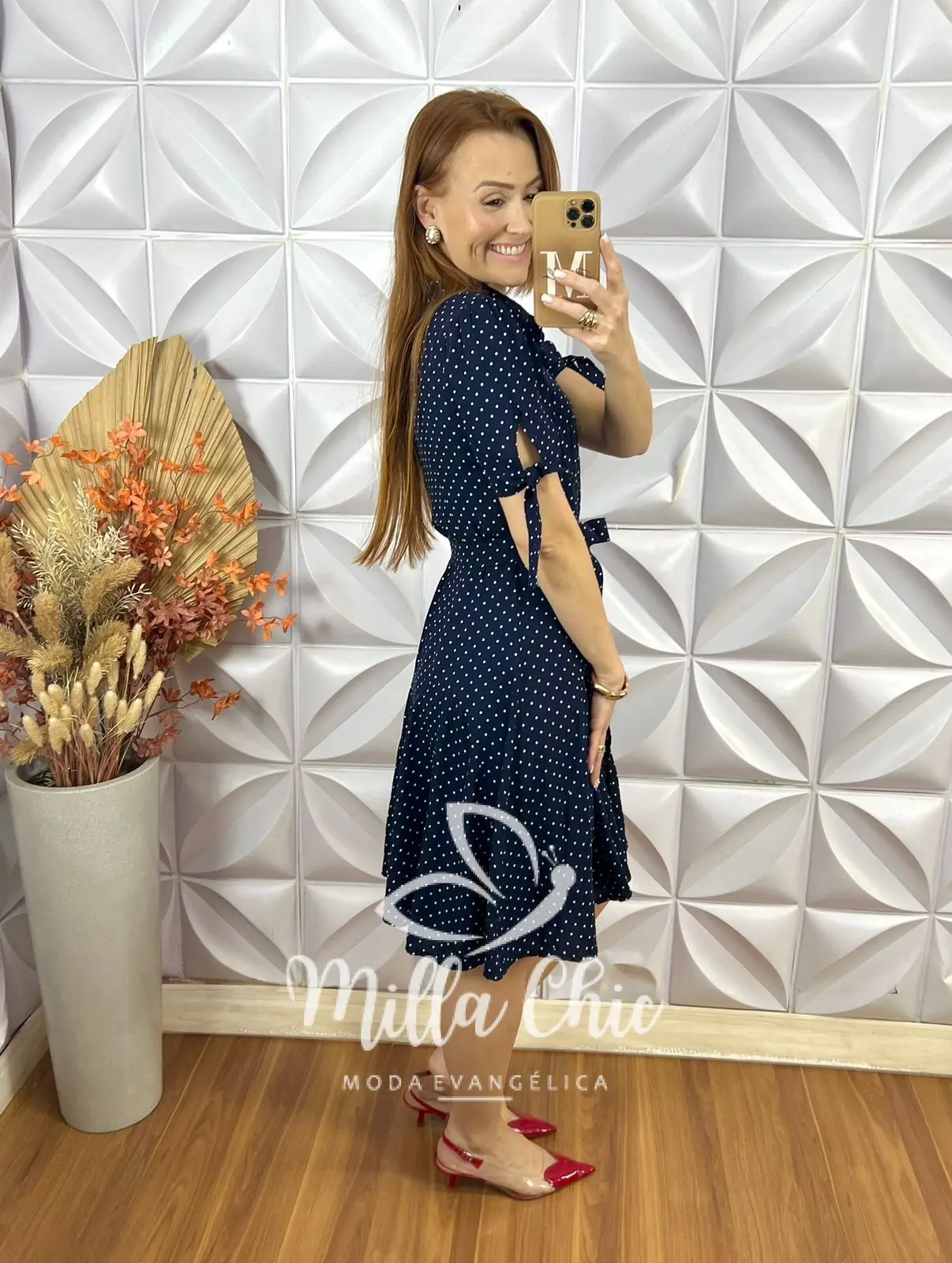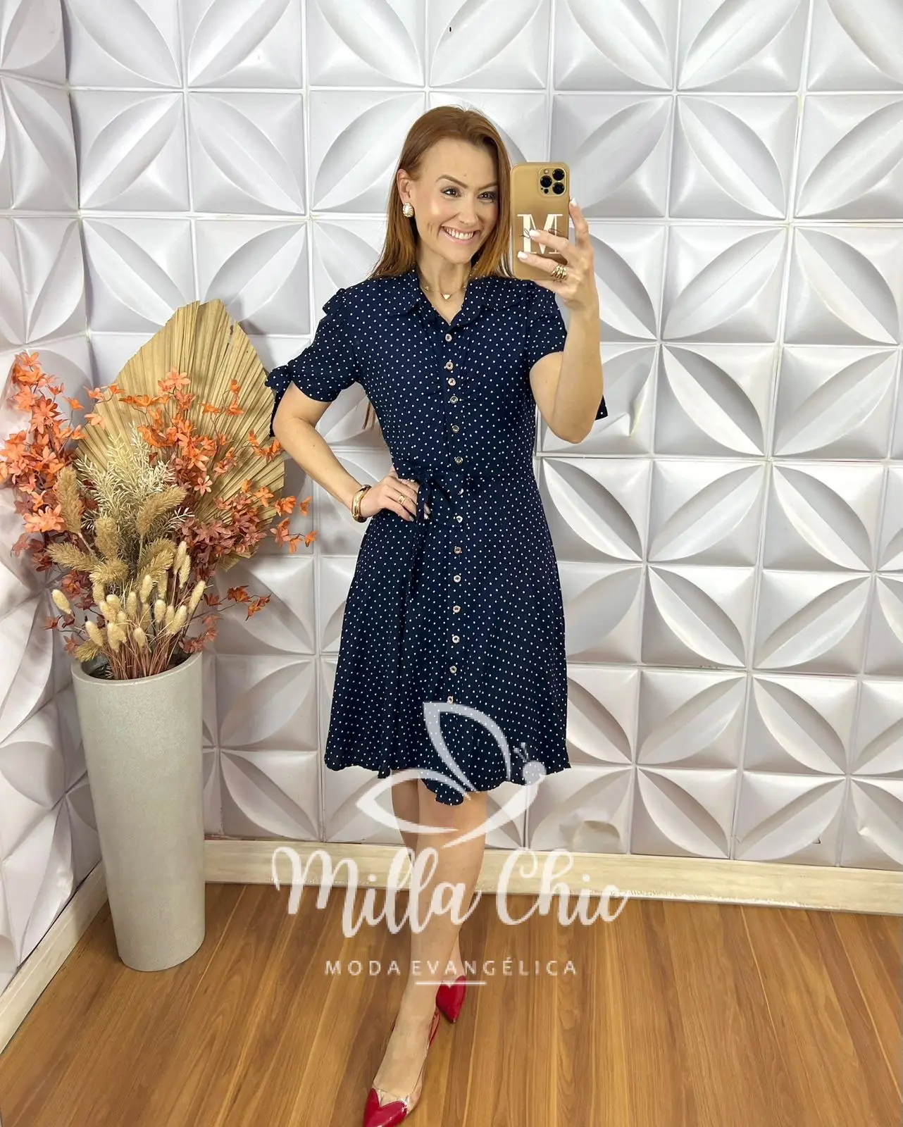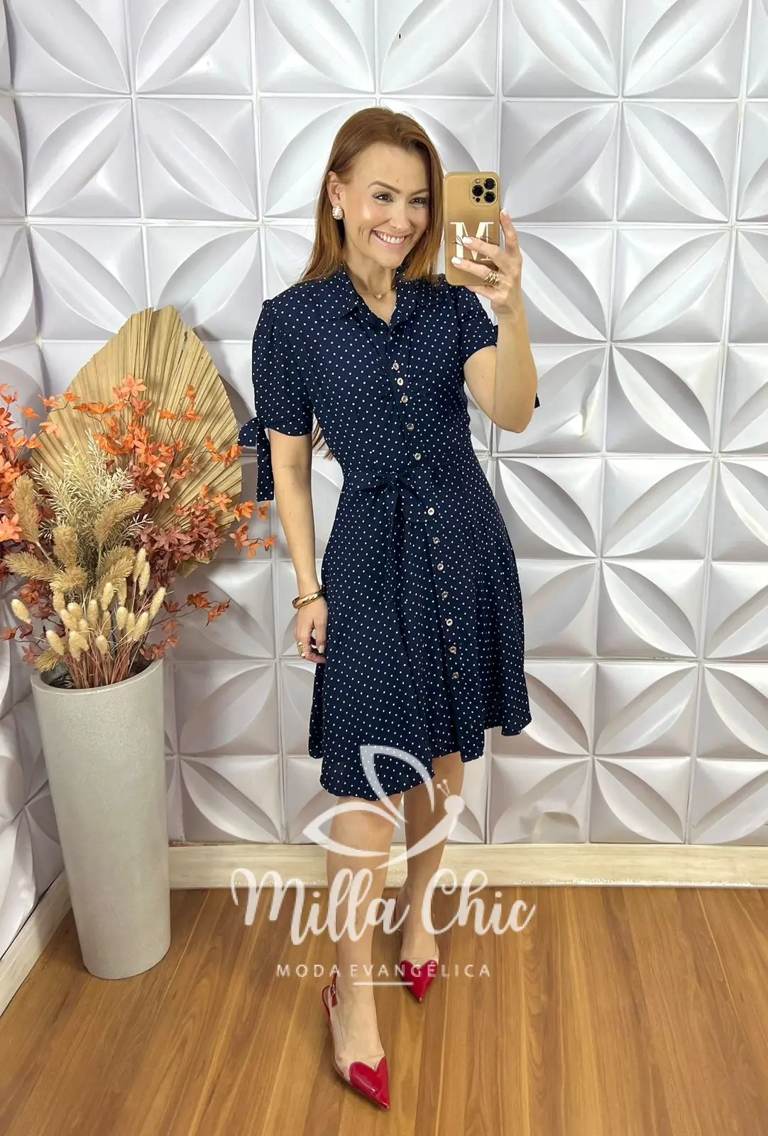 Chemise Pérola Em Viscolinho Póa - Azul Marinho - Milla Chic
