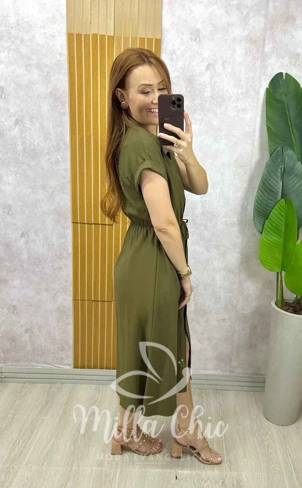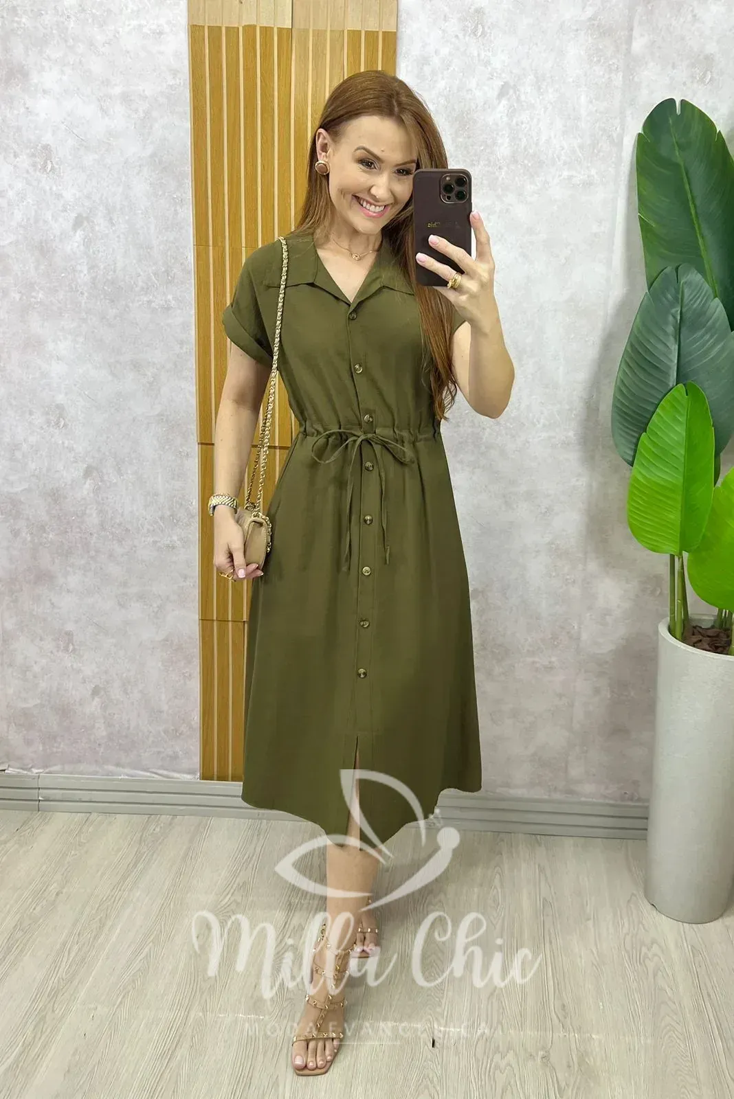 O vestido Chemise Sandra é uma peça que combina estilo e conforto em uma única roupa. Feito em alfaiataria marrant ( um tecido grosso com textura lembra uma sarja mais com caimento mais leve ) esse vestido é ideal para quem deseja um look que exala sofisticação, estilo e leveza. Ele é confortável e tem o puxador regulável que é um charme . Os botões são funcionais.