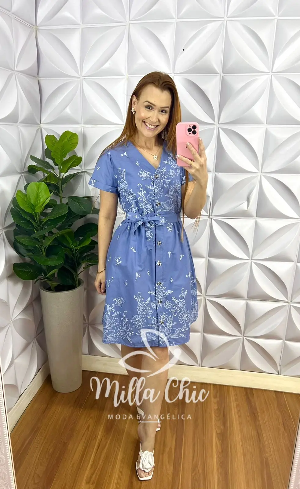 Chemise Tricoline Com Faixa Cinto Estampado Jamily - Azul - Milla Chic