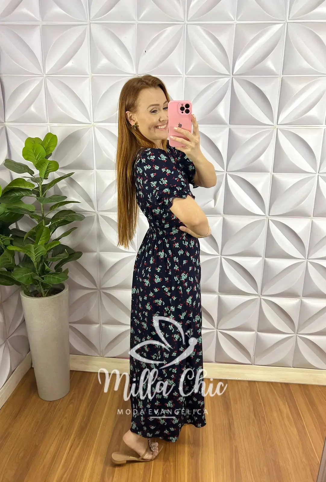 Possui : decote V, Todo de botões funcionais ótimo para quem amamenta, mangas raglan, pala na cintura com lastex nas costas, comprimento longo, caimento evase, forrado na saia.