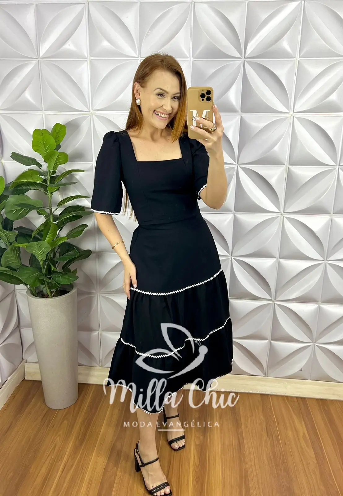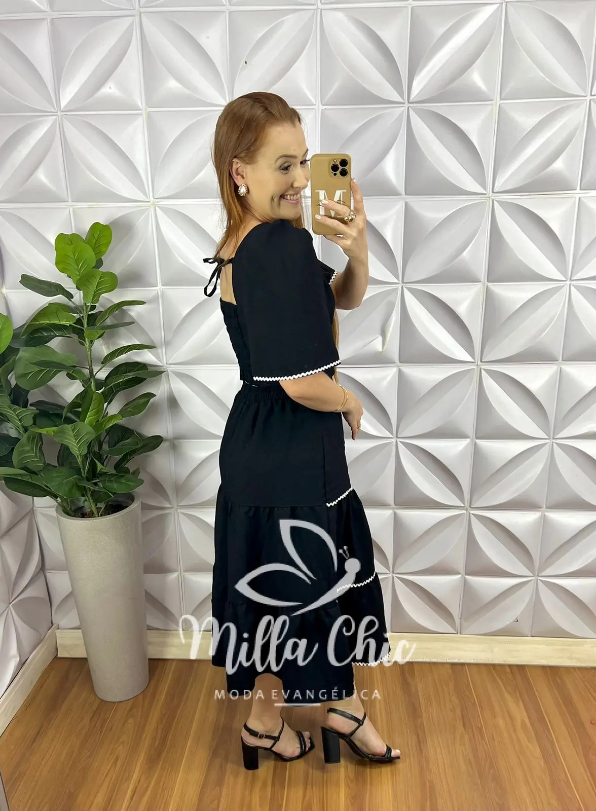Um conjunto todo no Alfaiataria Marrant tecido incrível e confortável. Com detalhes em viés branco que esta um charme!